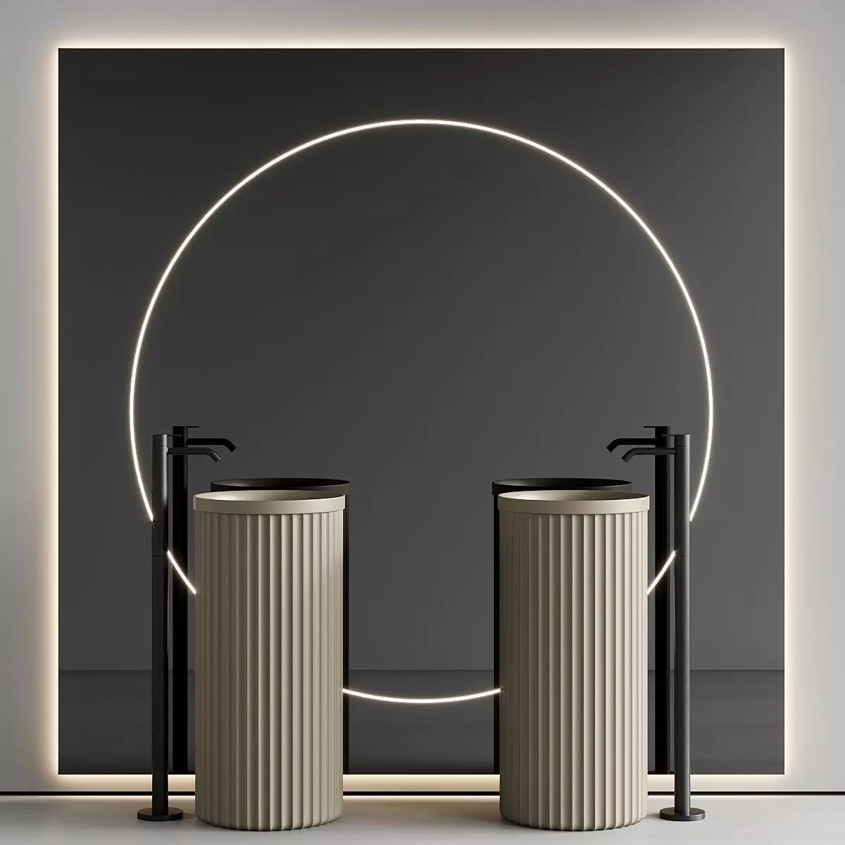 Washbasin:Collection - HeritageType - Freestanding round Solid Surface washbasinDesigner - Patrick NorguetDimensions:Width - 420mmDepth - 420mmHeight - 850mm