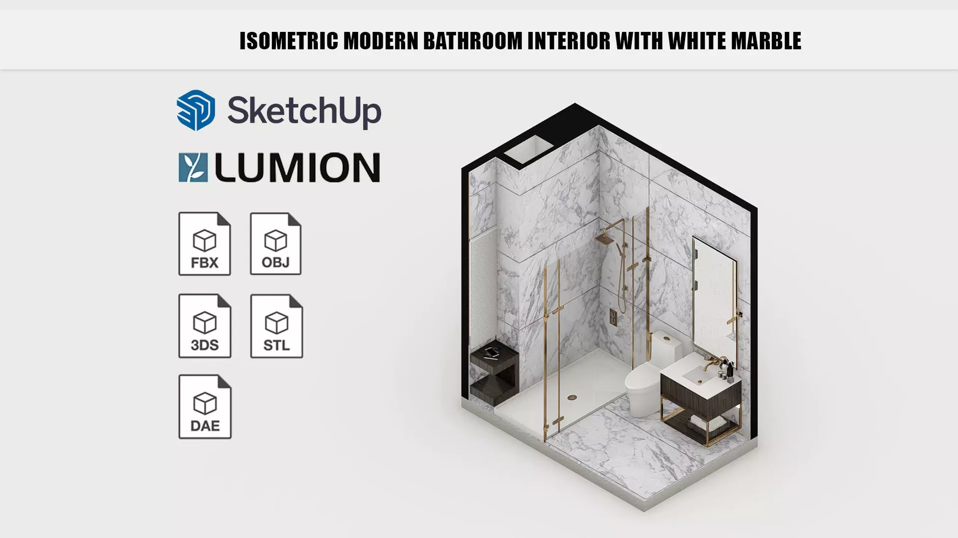 Discover the beauty of this isometric modern bathroom design featuring luxurious white marble finishes and contemporary aesthetics. This 3D bathroom visualization was modeled in SketchUp and rendered in Lumion, showcasing a high-end, minimalist interior perfect for modern homes or luxury projects.