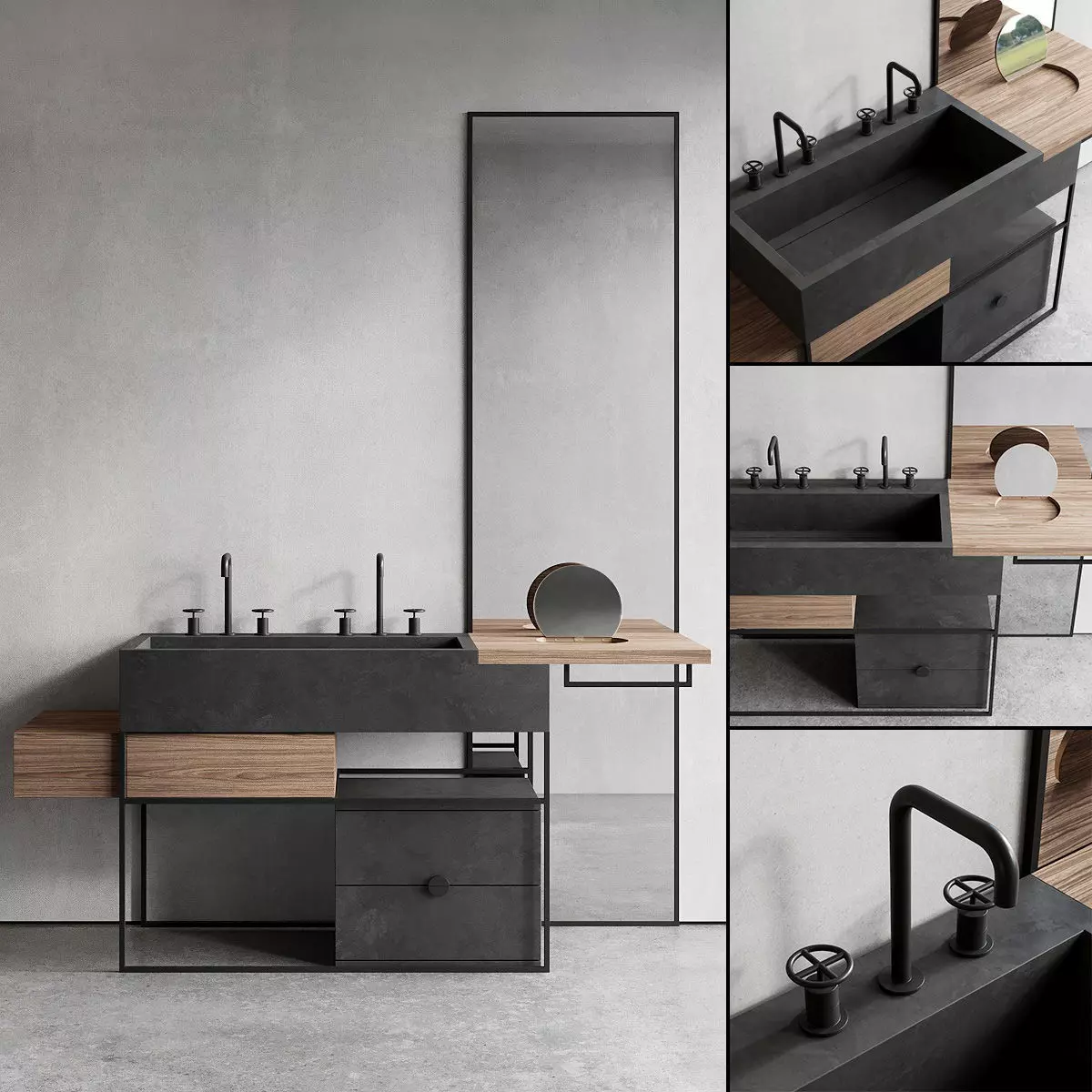 Collection - ItalgranitiLIVEType - Floor-standing double porcelain stoneware vanity unitMaterials - Metal, Porcelain stonewareDesigners - Centro Stile Milano ArchitettiManufacture year - 2019Product code - ACQA000001