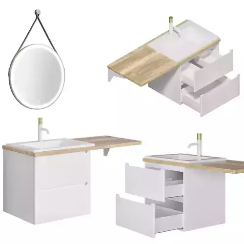 The furniture set includes drawers and doors that effortlessly slide out and open, offering ample storage space while maintaining a sleek and organized appearance.Mirror