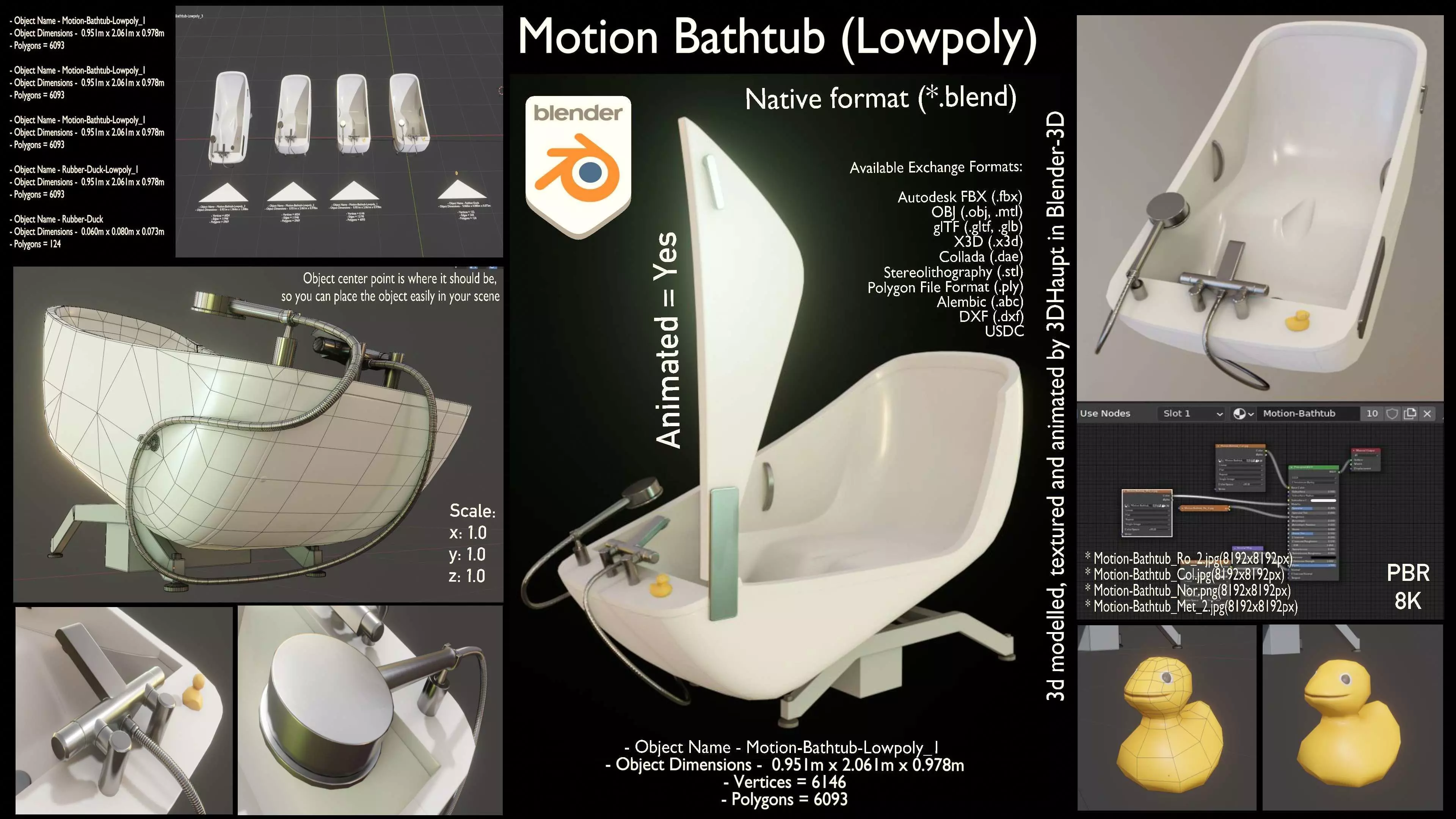 Here are the textured lowpoly versions of the motion bathtub.