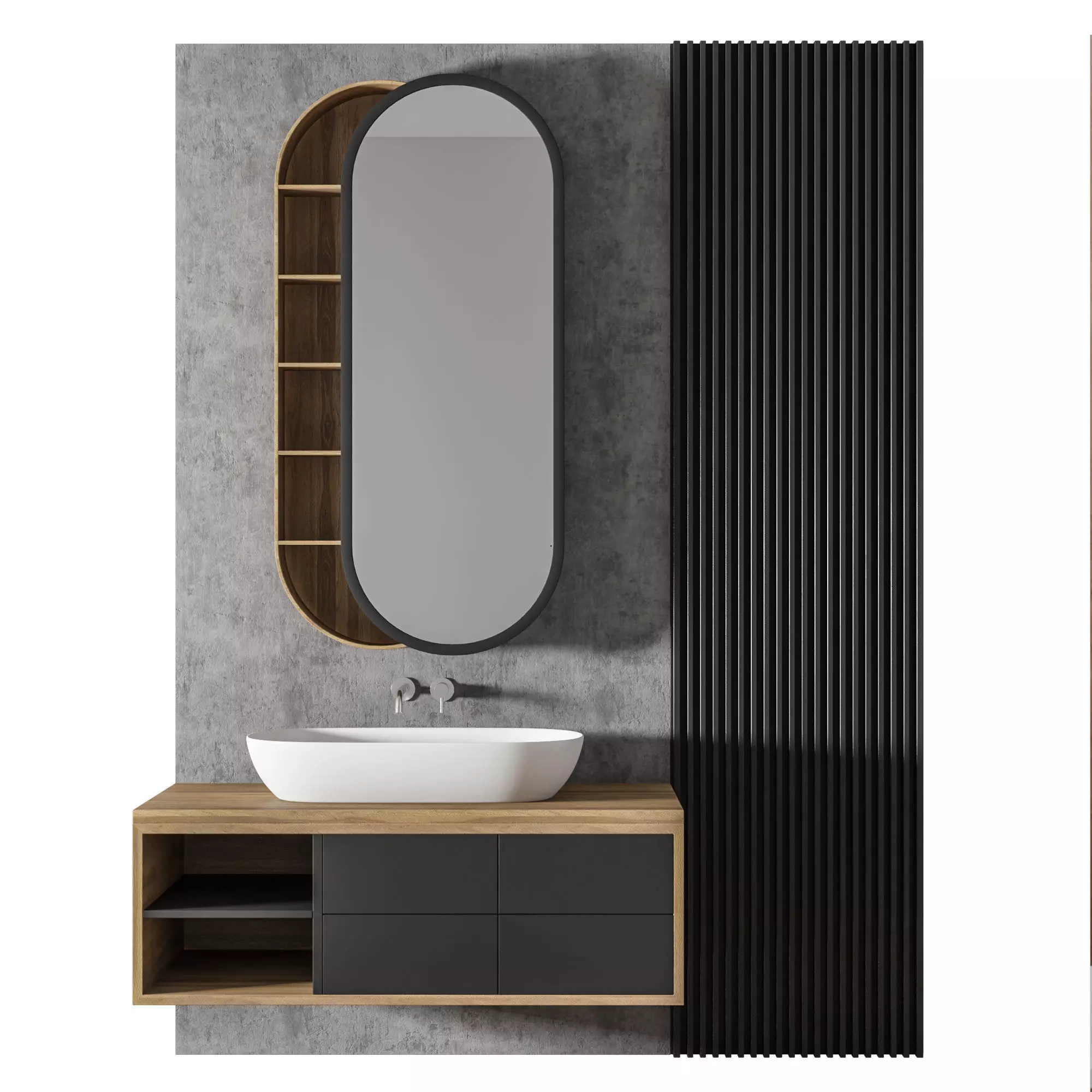 The model has material settings that define how surfaces look (color, shine, transparency, etc.).