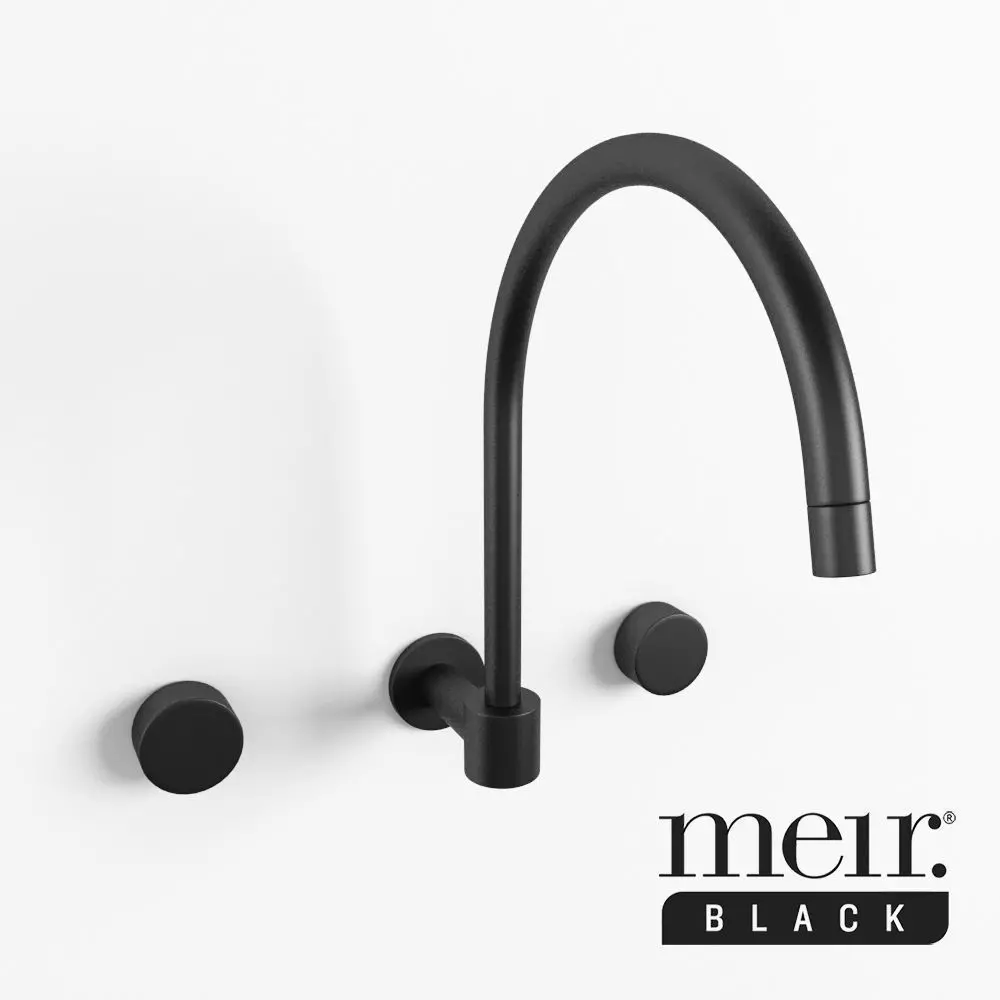 Company Meir https://www.meir.com.au/ Round Matte Black High Rise Spout (MS07)Circular wall taps (MW11)