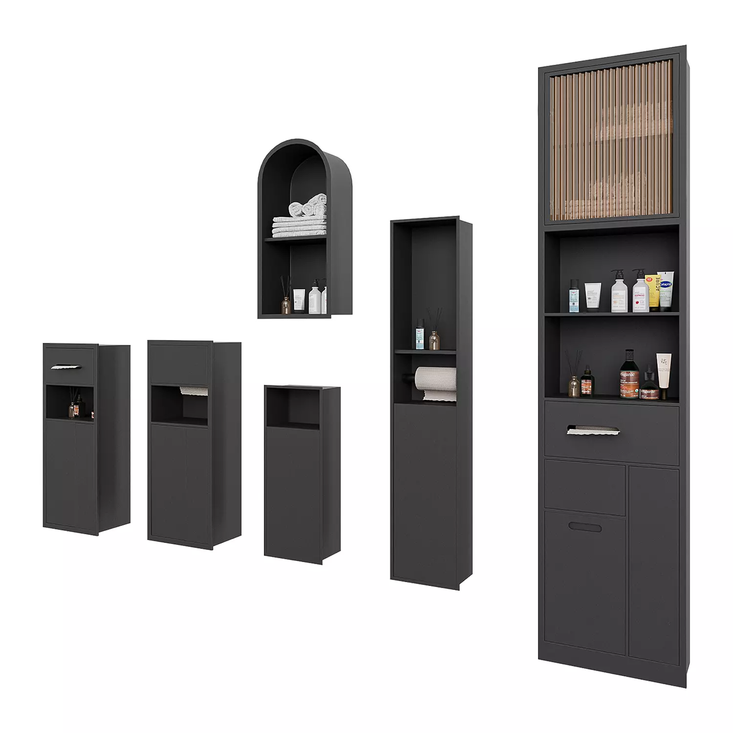 This set includes a collection of modern built-in wall niches designed for contemporary bathroom interiors.The models represent integrated wall storage systems commonly used in modern bathrooms for storing towels, toiletries and bathroom accessories.The set contains several niche variations: