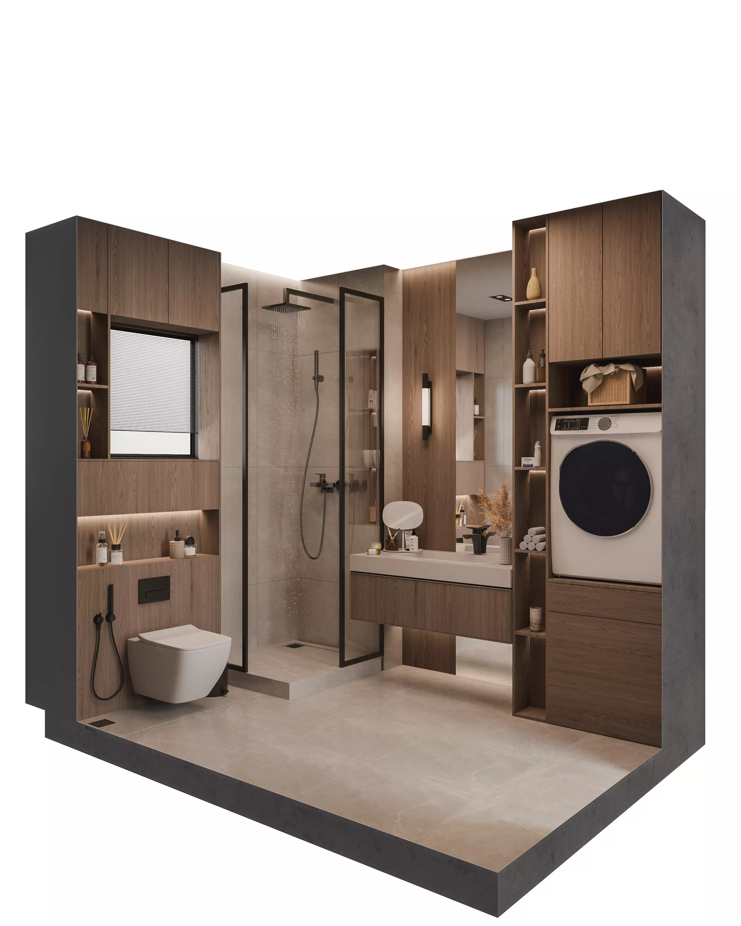 The model has material settings that define how surfaces look (color, shine, transparency, etc.).