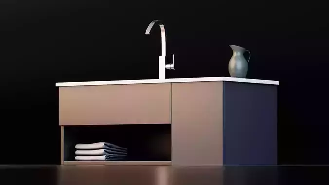 This Modern Bathroom Vanity Sink 3D Model is a high-quality, realistic interior asset designed for contemporary bathrooms, hotels, apartments, villas, and architectural visualization projects.The model features a minimal floating cabinet, integrated sink, modern metal faucet, and open storage shelf, inspired by real-world premium bathroom furniture.