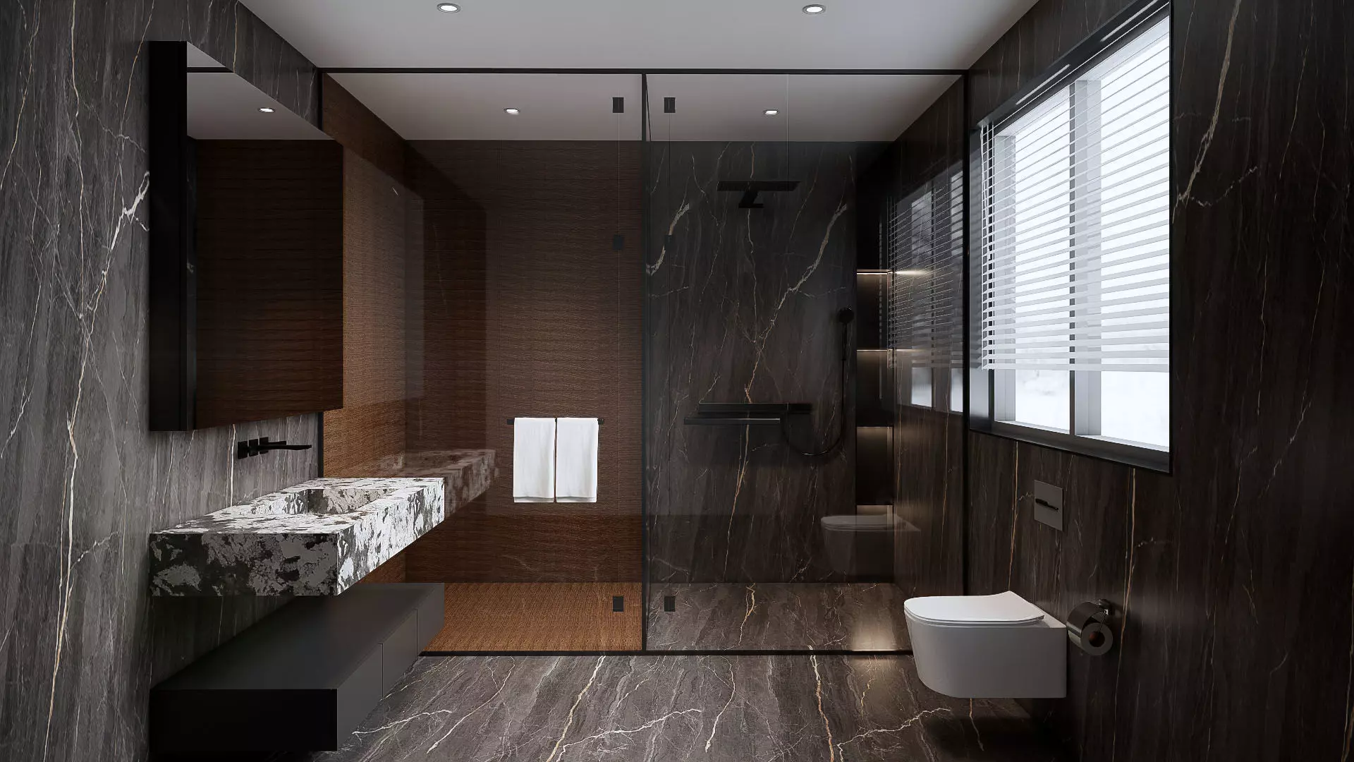 Space Introduction:Presents a modern light luxury style bathroom space, mainly using deep - veined marble and wood elements, paired with glass partitions, floating basins and embedded bathroom equipment, accurately creating a high - end, quiet and textured atmosphere. The space has clear functional zoning, combining aesthetics and practicality, suitable for bathroom decoration in high - end residences, boutique hotels and other places, enhancing the quality of life experience.Applicable Scenarios:High - end residential bathroom decoration reference, boutique hotel bathroom space design, home soft - outfit matching display, decoration company case promotion, bathroom product display sceneIt was created with SketchUp and rendered with Enscape, including lighting and materials. Feel free to check it out, and if you have any questions, please contact me. Thank you.