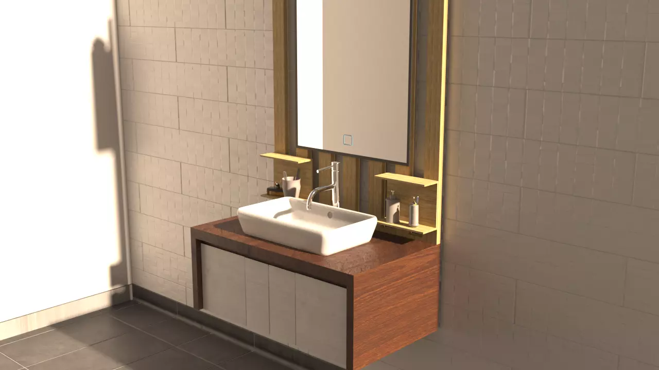 The model has material settings that define how surfaces look (color, shine, transparency, etc.).