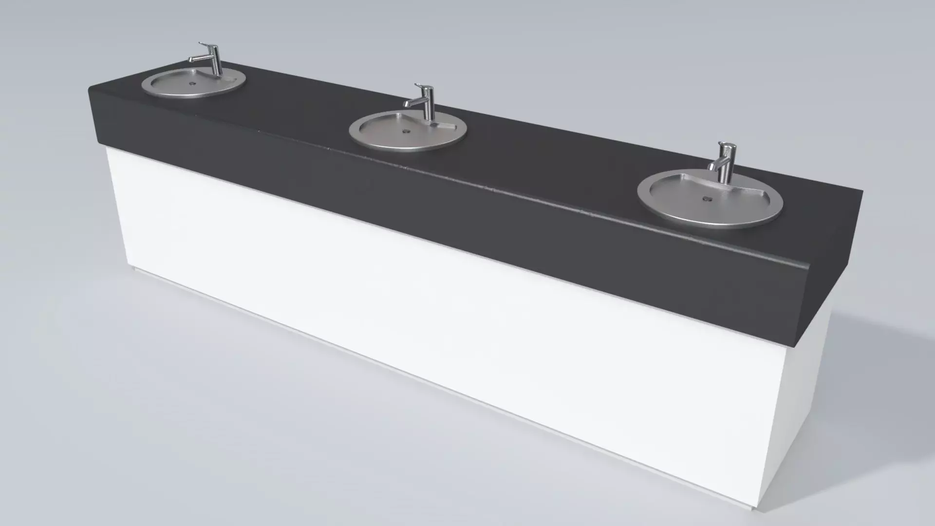 A high quality, yet low poly 3D model of a Modern Vanity Unit with Washroom/Bathroom Sinks (3), created in Autodesk Maya.