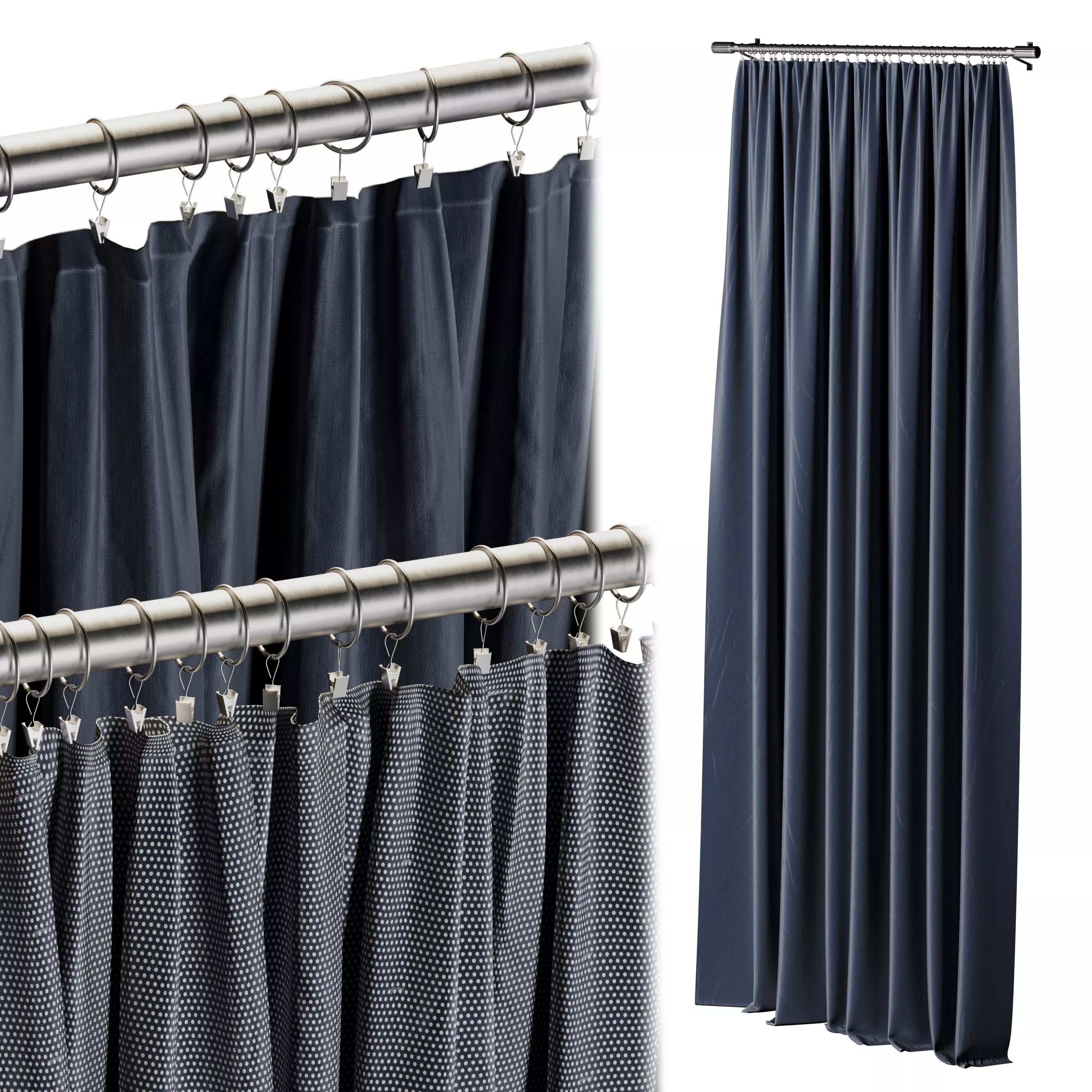 Patterned and plain rod bule curtains Blue fitting room 02 Low-poly 3D model