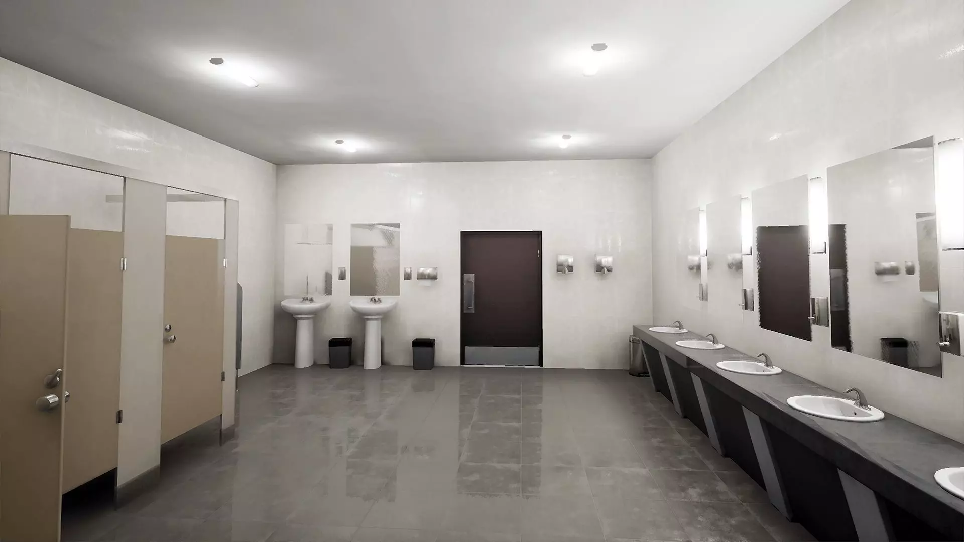 PBR Restroom public with sinks and mirrors Low-poly 3D model