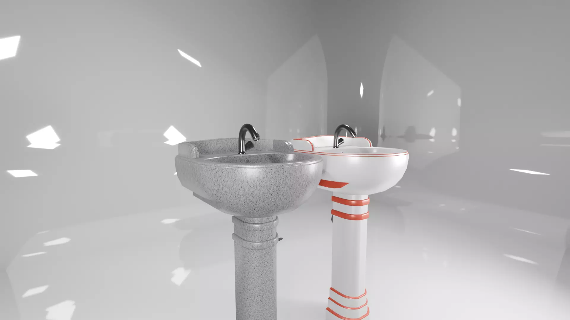 The model has material settings that define how surfaces look (color, shine, transparency, etc.).