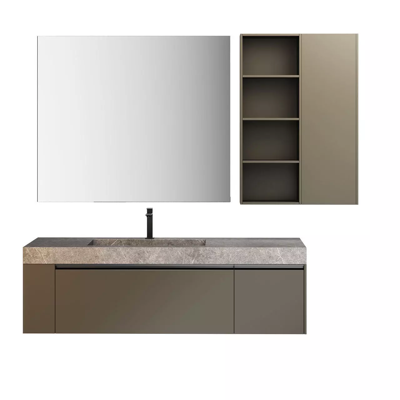 3d model Sense 07 Vanity Unit designed by Aqua for Idea Group and launched in 2022. The Sense 07 Vanity Unit by Ideagroup enhances interior design through its refined contemporary aesthetic and functional modular composition. Defined by clean lines, balanced proportions, and high quality finishes, it supports the creation of elegant and practical bathroom layouts. This vanity unit is ideal for modern residential or hospitality interiors, offering ample storage while maintaining a light, architectural presence. Its understated design allows it to integrate seamlessly into a variety of bathroom concepts, helping designers visualize sophisticated spaces that combine comfort, functionality, and visual harmony. Dimensions of the vanity unit: H 152 x L 172 x D 50 cm / H 59.84 × L 67.72 × D 19.69 inches. The Vray, Corona, and Blender files come with materials in place, ready to render.