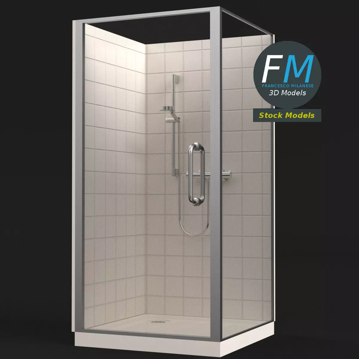 Shower 3D Model. 8 individual objects (frame, wall, tray, shower, moving frame, 2 glasses, handles), sharing 2 non overlapping UV Layout Maps, Materials (glass, opaque) and PBR Textures sets. Production-ready 3D Model, with PBR materials, textures, non overlapping UV Layout map provided in the package.Quads only geometries (no tris/ngons).Easily customizable: UV unwrapped geometries, so you can create new Textures (or modify the existing ones) using the UV Layout maps provided in the package (as png with alpha).Each Object, Material or Texture provided in the package has a unique, meaningful name.Made in Blender 3.3 with a Cycles PBR shader with textures included (principled and Eevee compatible), then exported to OBJ and FBX; materials and textures made in Substance Painter, exported for PBR, V-Ray, Unity, Unreal.PROMO IMAGES: the first image has been rendered in Cycles for Blender; in particular, you can find 11+ promo images in this description: