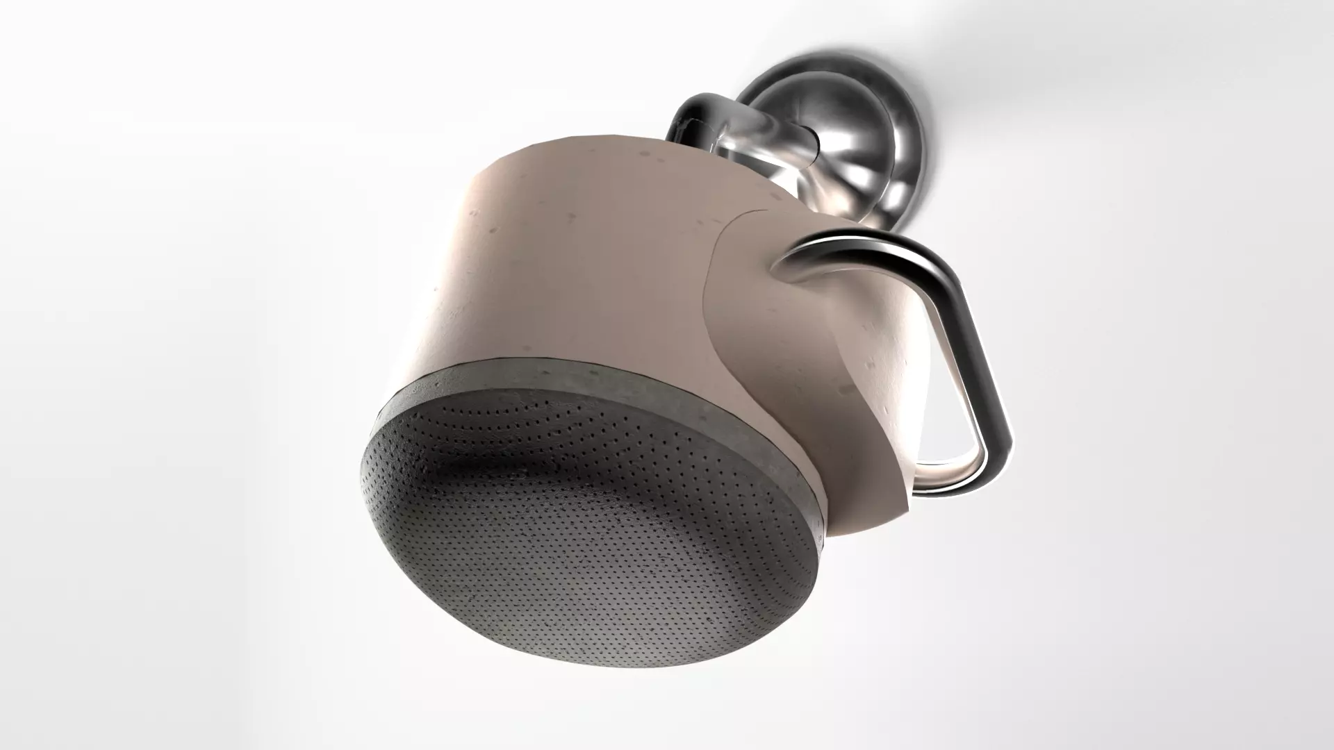 Realistic 3D model of a shower head filter, designed for modern bathrooms and wellness-oriented interiors. This model includes detailed geometry and clean topology, featuring an integrated water purification chamber. Ideal for product visualization, interior scenes, or plumbing demonstrations. The shower head filter stands at 31 cm (12.2 inches) tall.