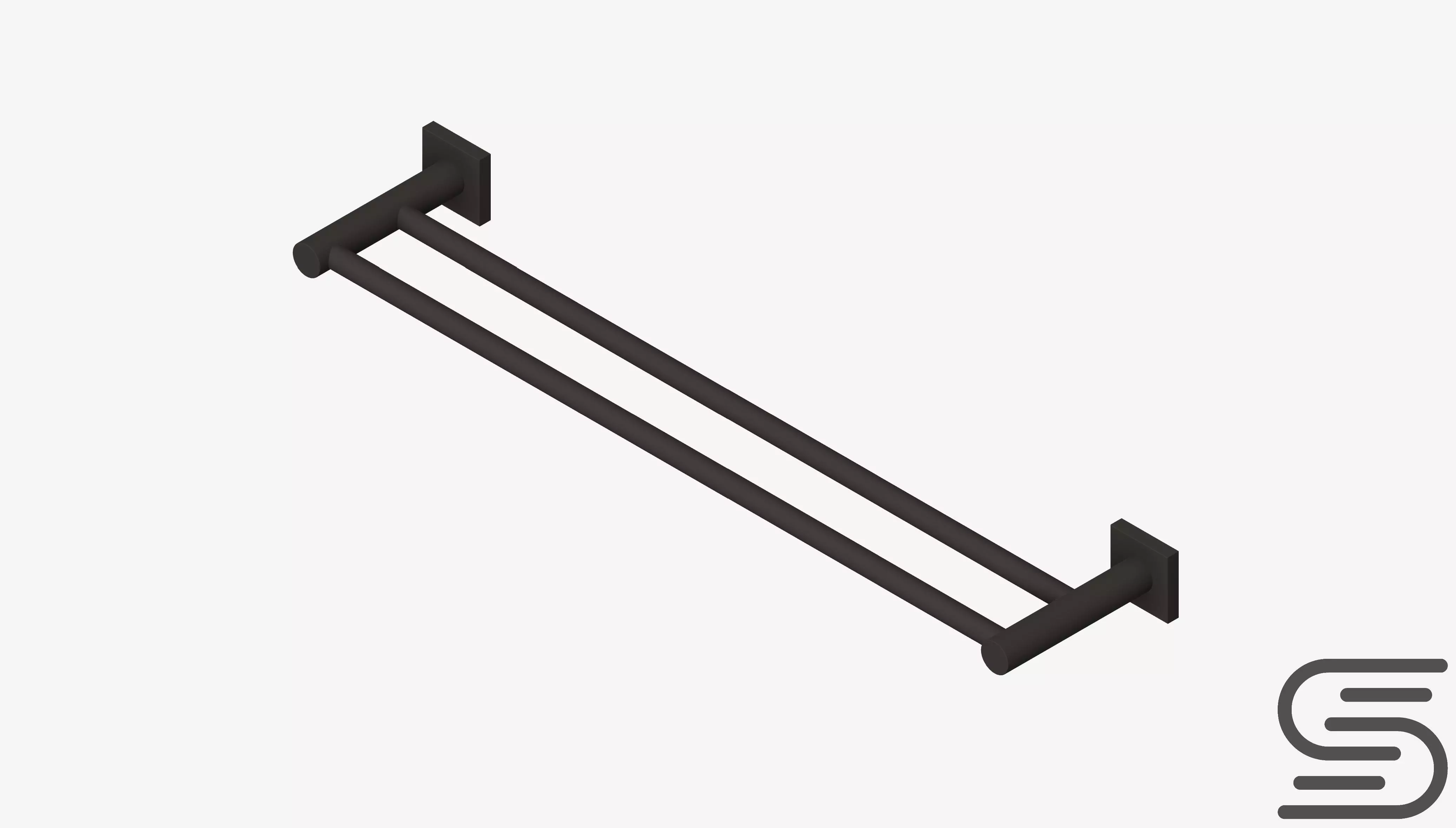 Towel Rail - Double - Luxury - Round - 600 - Square Plate Low-poly 3D model