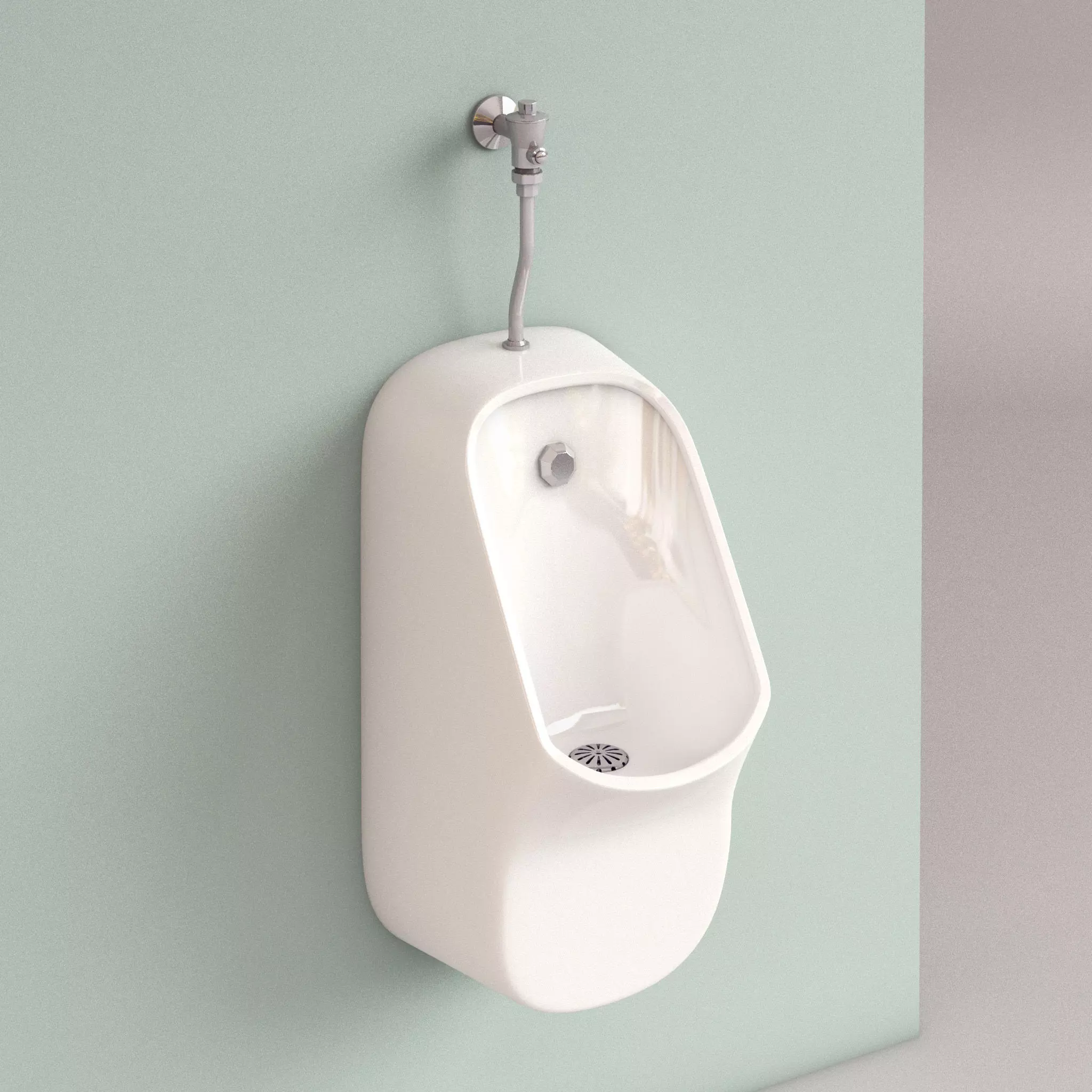 Wall-hung urinal, manufactured by Vaal, model Sweetpea.White enamel and stainless steel construction