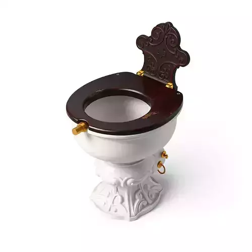 This exquisitely detailed 3D model presents a luxurious Victorian-style toilet, perfect for adding a touch of vintage elegance to any digital environment. The design features a pristine white ceramic bowl, intricately adorned with elaborate scrollwork and decorative motifs on its pedestal base, reminiscent of classical baroque aesthetics. Complementing the ceramic, the toilet seat and a high, carved backrest are crafted from rich, dark wood, showcasing fine grain and delicate relief carvings. Subtle distressed gold accents on the wood and polished brass hardware, including the ornate hinges and a functional-looking flush lever, enhance its antique charm and opulence. This model is ideal for high-fidelity architectural visualizations of historical or upscale interiors, period-accurate game environments, cinematic renders, or immersive virtual reality (VR) and augmented reality (AR) experiences requiring exceptional visual quality. Its meticulously crafted PBR textures ensure realistic material representation under various lighting conditions, providing stunning visual realism. The clean topology and UV unwrapped meshes make it ready for easy integration into your projects. While suitable for static renderings and close-up shots due to its high level of detail, it could also serve as a hero asset in real-time applications, potentially requiring LODs for broader use. Supported file formats include GLB, OBJ, FBX, USD, DAE, ABC, PLY, and STL, ensuring broad compatibility across various 3D software and engines.