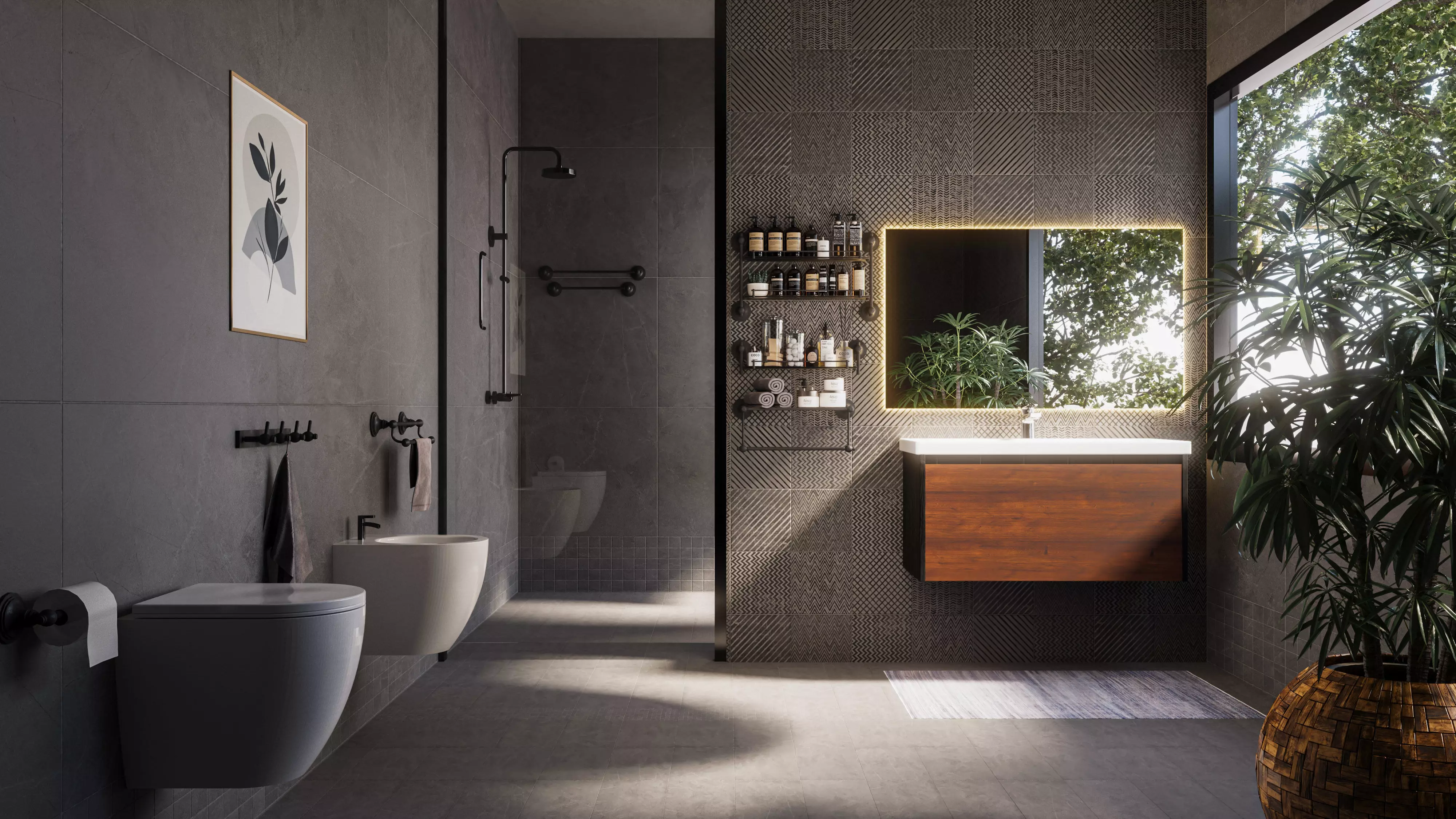 Bring elegance and realism to your architectural projects with this high-quality modern bathroom 3D model, meticulously crafted in 3ds Max and rendered using Corona Renderer. This scene features a sophisticated, minimalistic design with a calming natural ambiance, perfect for interior visualizations, real estate presentations, or virtual staging.