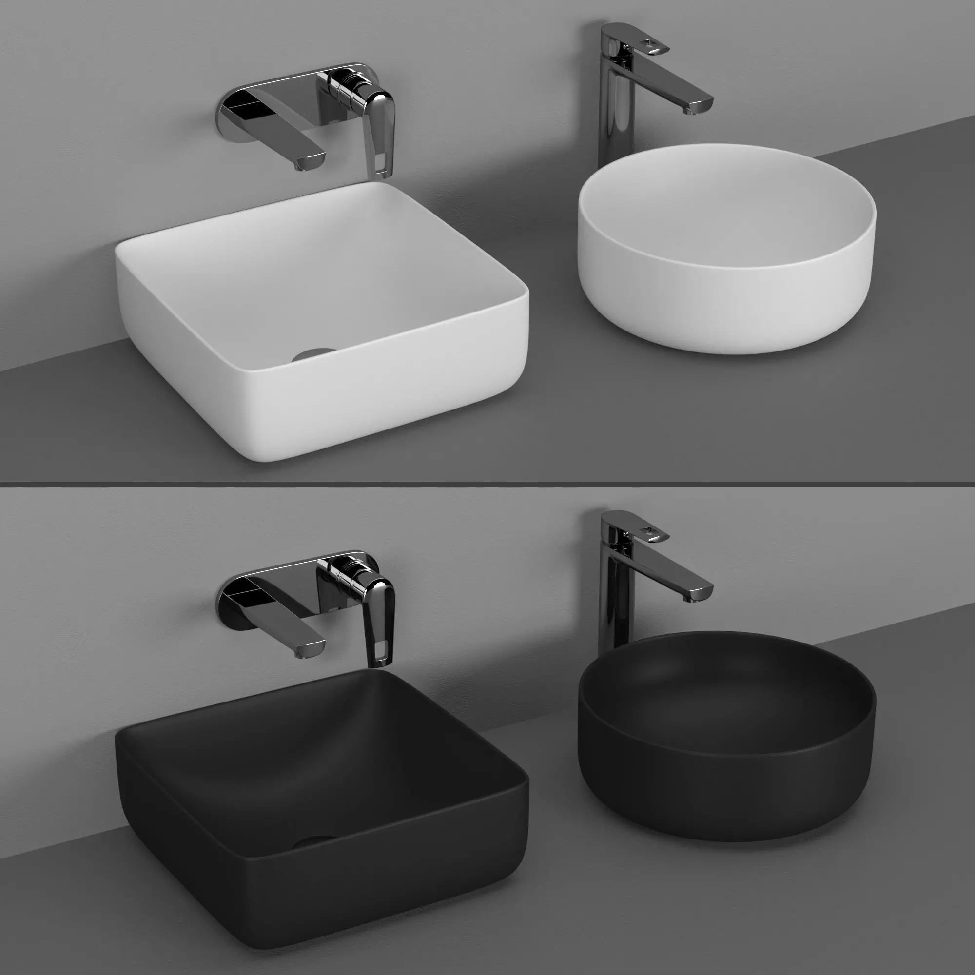 There are 6 objects in the scene, a basin mixer, a hide basin mixer, and two sinks, in black and white matte ceramic.A turbo-smooth system was opened at all objects during rendering (I recommend 2 iterations for close angles, 1it for long distance).