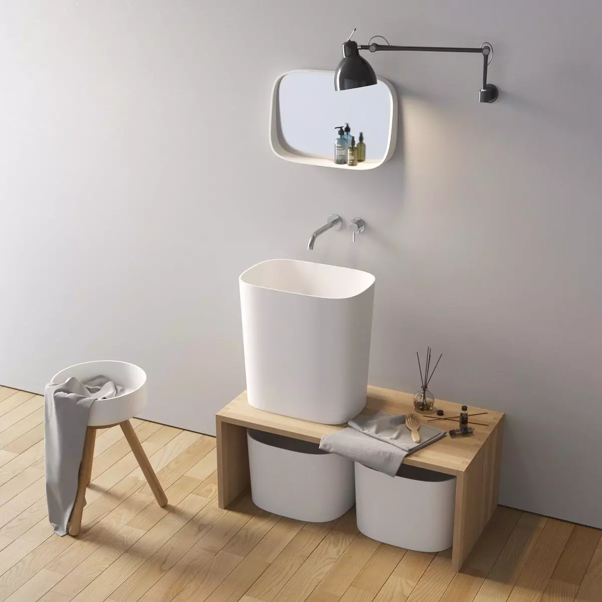 The model has material settings that define how surfaces look (color, shine, transparency, etc.).