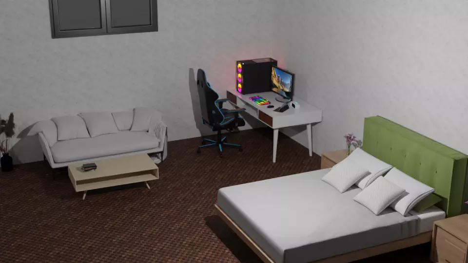The model has material settings that define how surfaces look (color, shine, transparency, etc.).