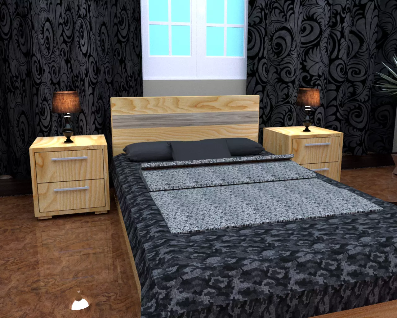 The model has material settings that define how surfaces look (color, shine, transparency, etc.).