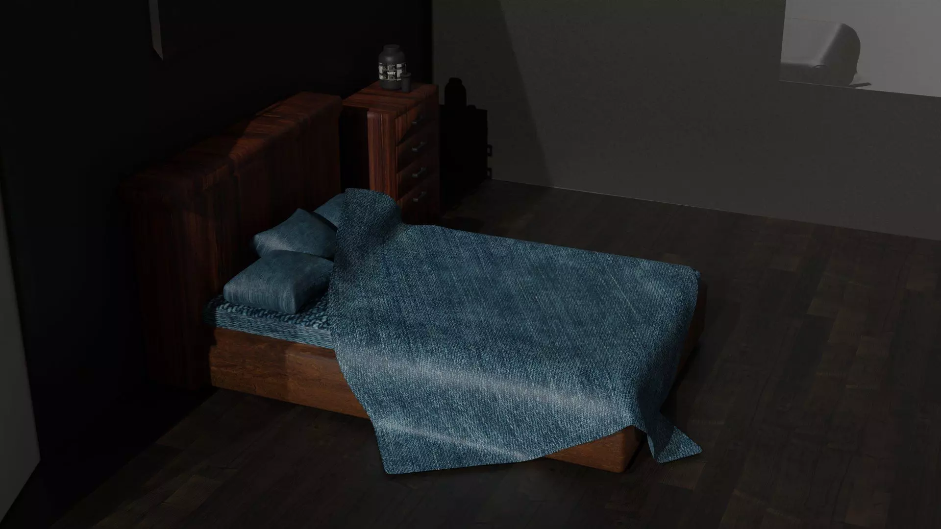 The model has material settings that define how surfaces look (color, shine, transparency, etc.).