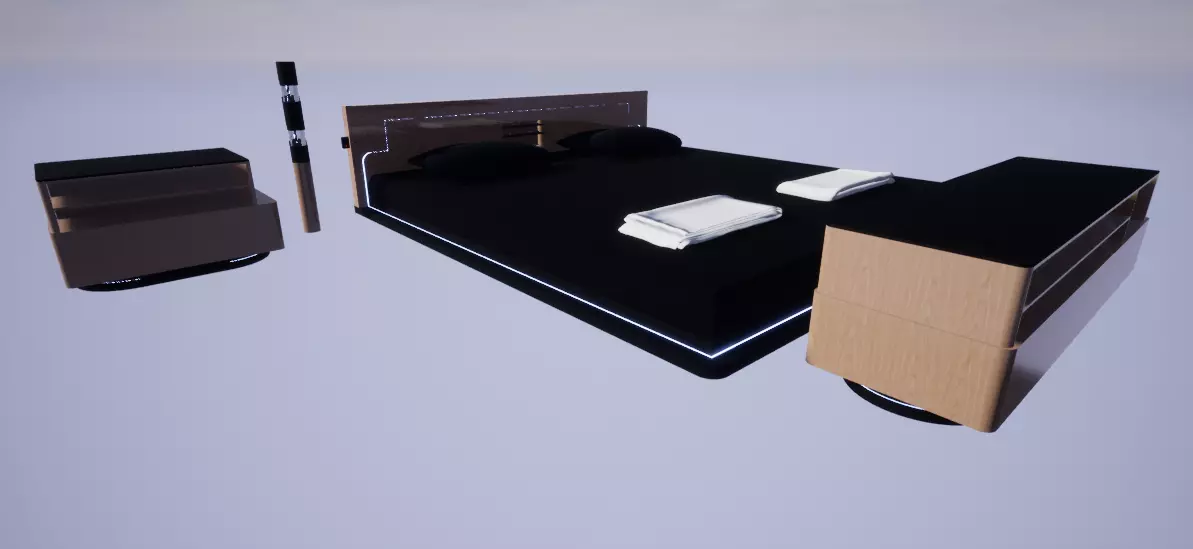 Actor Blueprint: (E) Открыть, закрыть тумбочку, большую тумбу, тайник. Включить лампы в тайнике. (Q) Открыть, закрыть панель управление тайника.(R) Включить, выключить лампу.(T) Включить, выключить подцветку кровати.