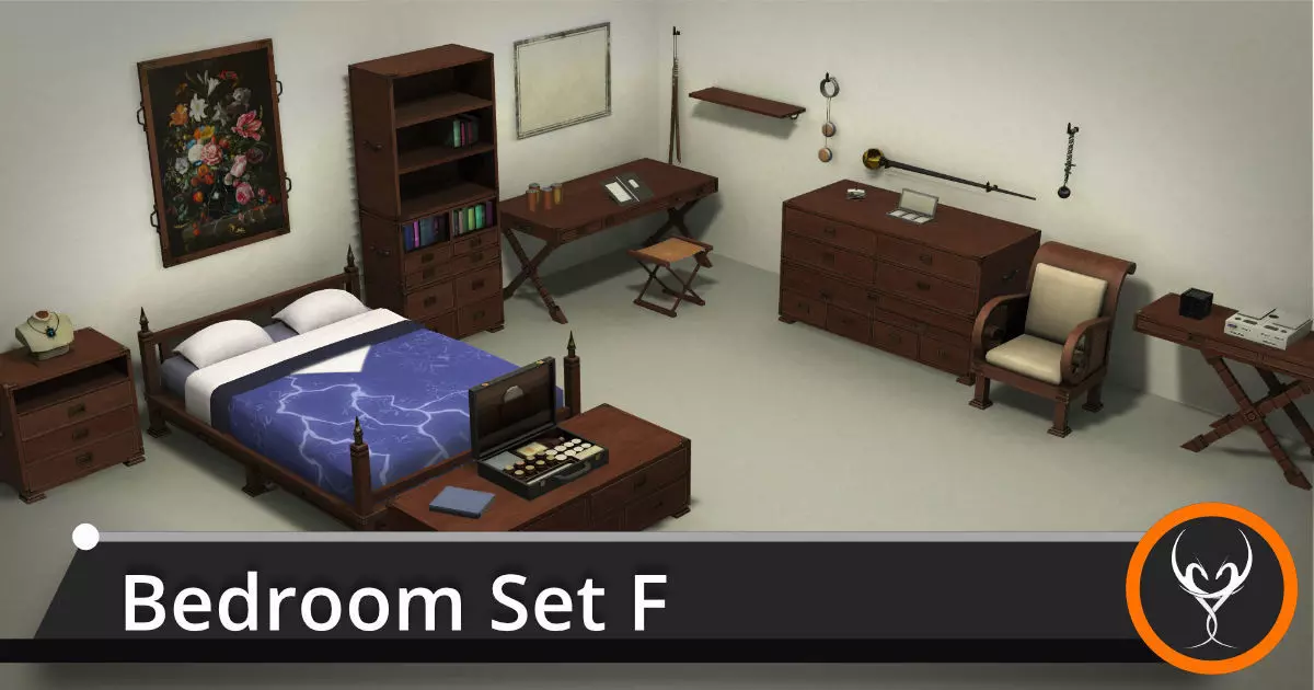 A set about a colonial style 19thcentury bedroom and office for the adventure on the road. The set contains 27 objects with 205 textures in PBR style.
