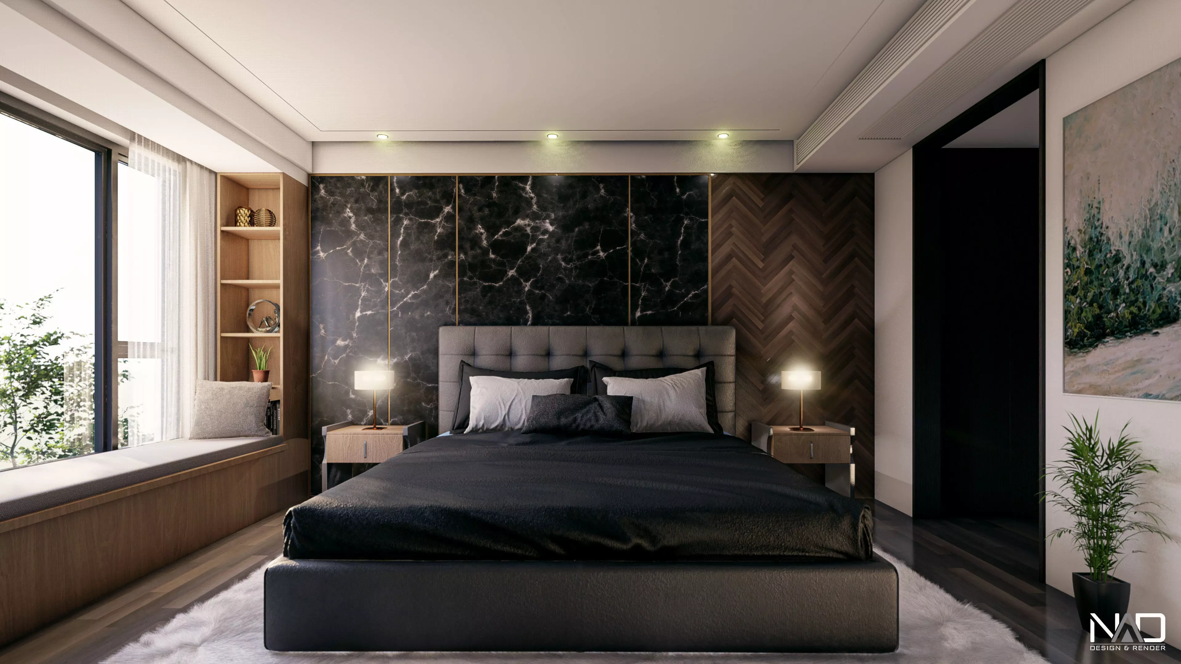 In my capacity, I led the conceptual design process for the Black Bedroom, encompassing a holistic approach from meticulous modeling to captivating rendering and dynamic animation. Commencing with the conceptualization phase, I meticulously crafted intricate 3D models, ensuring precision and attention to detail to materialize the envisioned aesthetic and functionality of the Black Bedroom. Leveraging advanced rendering techniques, I then transformed these models into visually striking representations, capturing the essence of elegance and sophistication inherent in the bedroom's design. Additionally, I adeptly employed animation to breathe life into the space, creating immersive walkthroughs that allowed stakeholders to experience the flow and ambiance of the Black Bedroom firsthand. Through this integrated approach, spanning modeling, rendering, and animation, I facilitated the seamless realization of the Black Bedroom's concept, delivering a compelling visualization that epitomizes luxury and style in interior design.