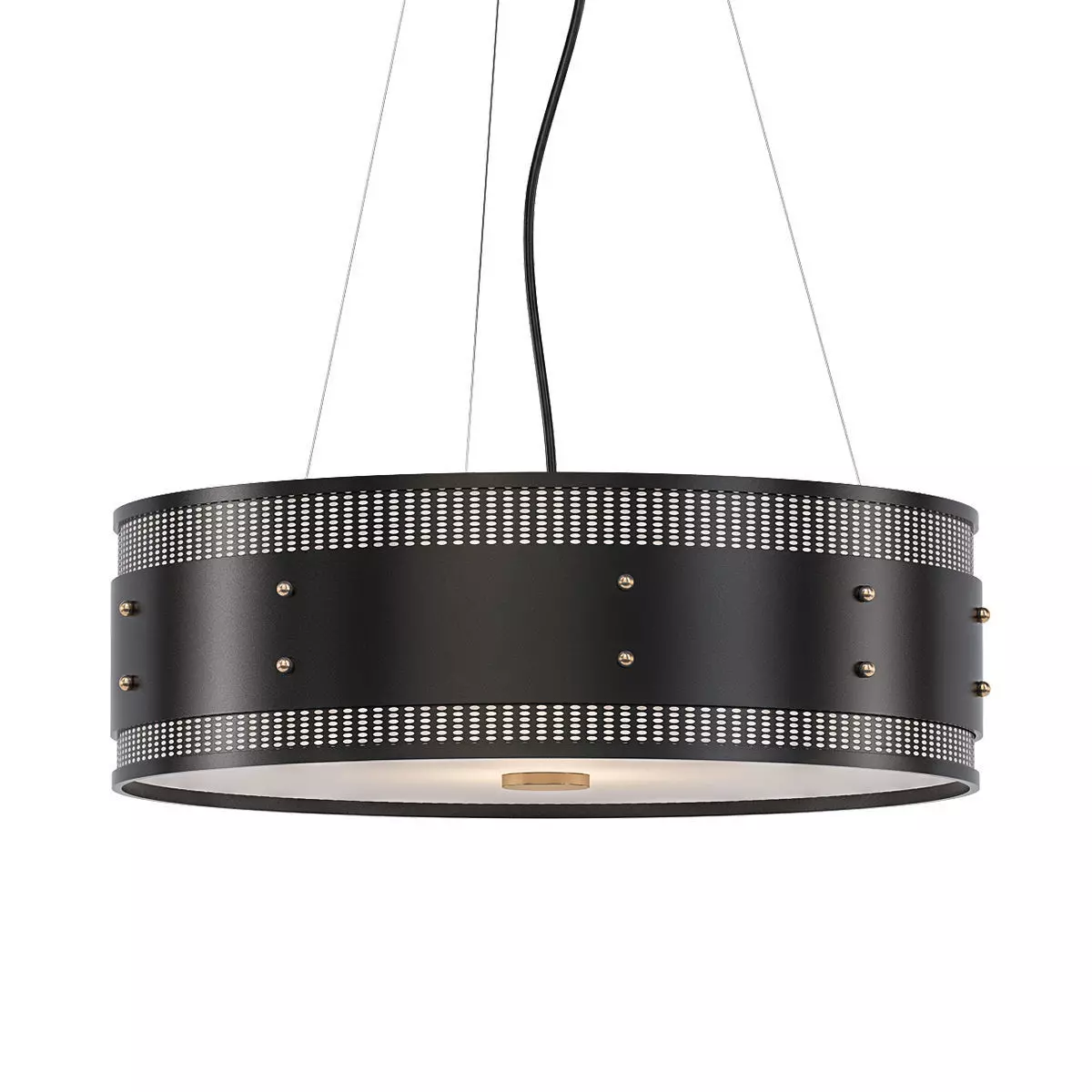 Светильник на 4 лампы барабанной формы с сетчатым металлическим абажуром и матовым рассеивателем. Латунные атрибуты добавляют в дизайн солидный индустриальный оттенок, а возможность выбрать световую температуру ламп, позволит создать индивидуальное настроение окружающего пространства и его жильцов.