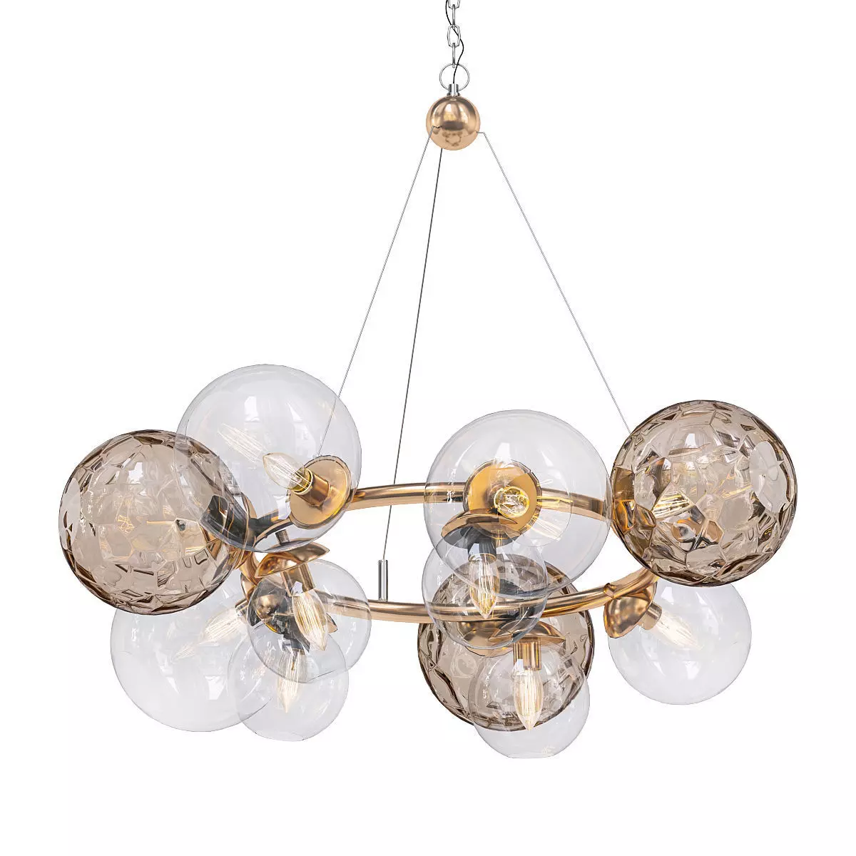 Chandelier 9-Light With Silver Leaf and Champagne Metal Glass