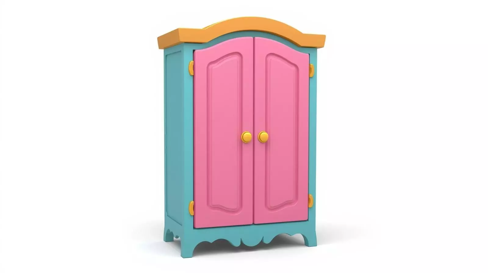 Key Features:Playful cartoon wardrobe with a vibrant pink and teal color scheme.Features an arched top trim and golden-yellow hardware.Two paneled doors with cute round knobs and decorative hinges.Charming scalloped base design.Ideal for children's games, animations, dollhouse themes, and playful scenes.Optimized for animations, games, and high-quality renders.High-quality mesh and clean, cheerful details.Great for game developers, animators, and imaginative interior designs.20 One-Word Tags:WardrobeCartoonPinkTealFurnitureChildsKidsPlayfulColorfulCabinetClosetStylizedGameAnimationPropBedroomCuteHomeStorageDollhouse