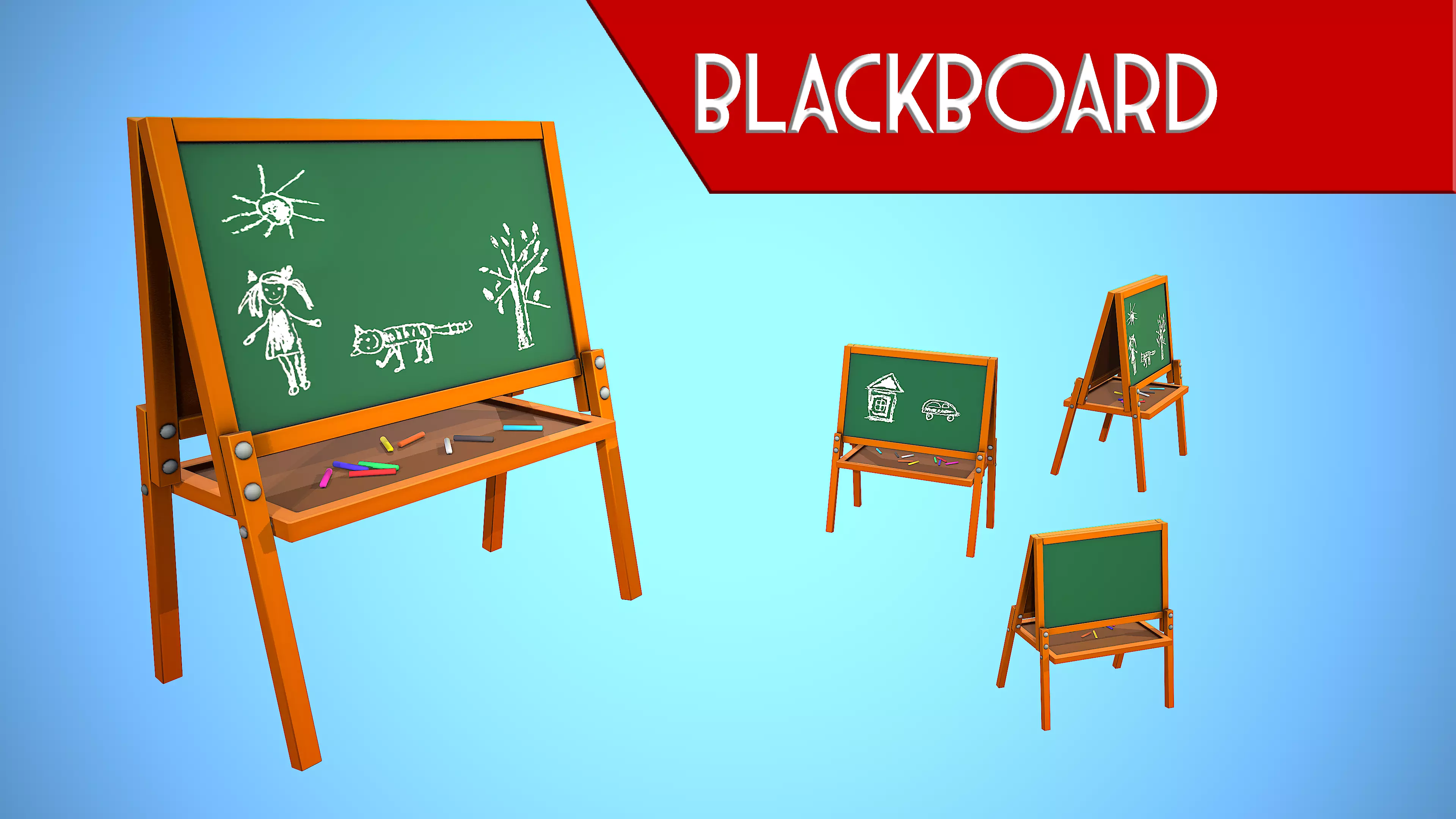 Low poly textured model of CHILDREN BLACKBOARD CARTOON STYLIZED. Well-textured and ready for Virtual Reality (VR), Augmented Reality (AR), games and other real-time apps for handheld devices.