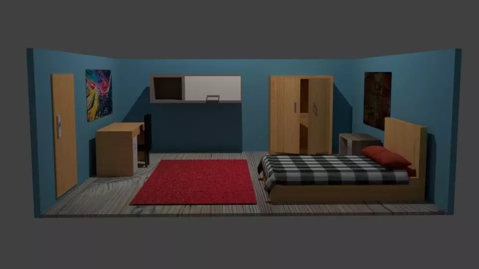 Low poly room made in Blender, textured in blender.In rar file: textures blender map for room.In blender map: obj,blend,fbx,mtl,3ds.polygons: 2961vertices:3243tris:6311Game ready room, tested in unity.Critics and comments are welcome.