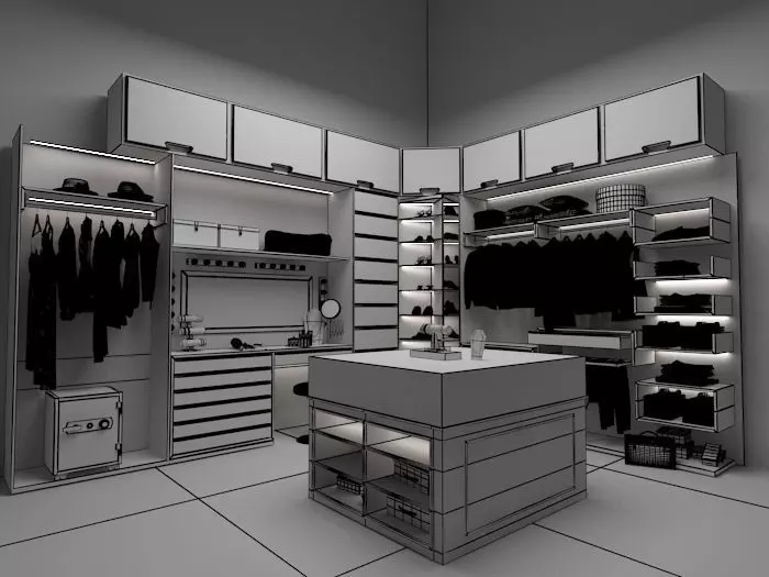 The model has material settings that define how surfaces look (color, shine, transparency, etc.).