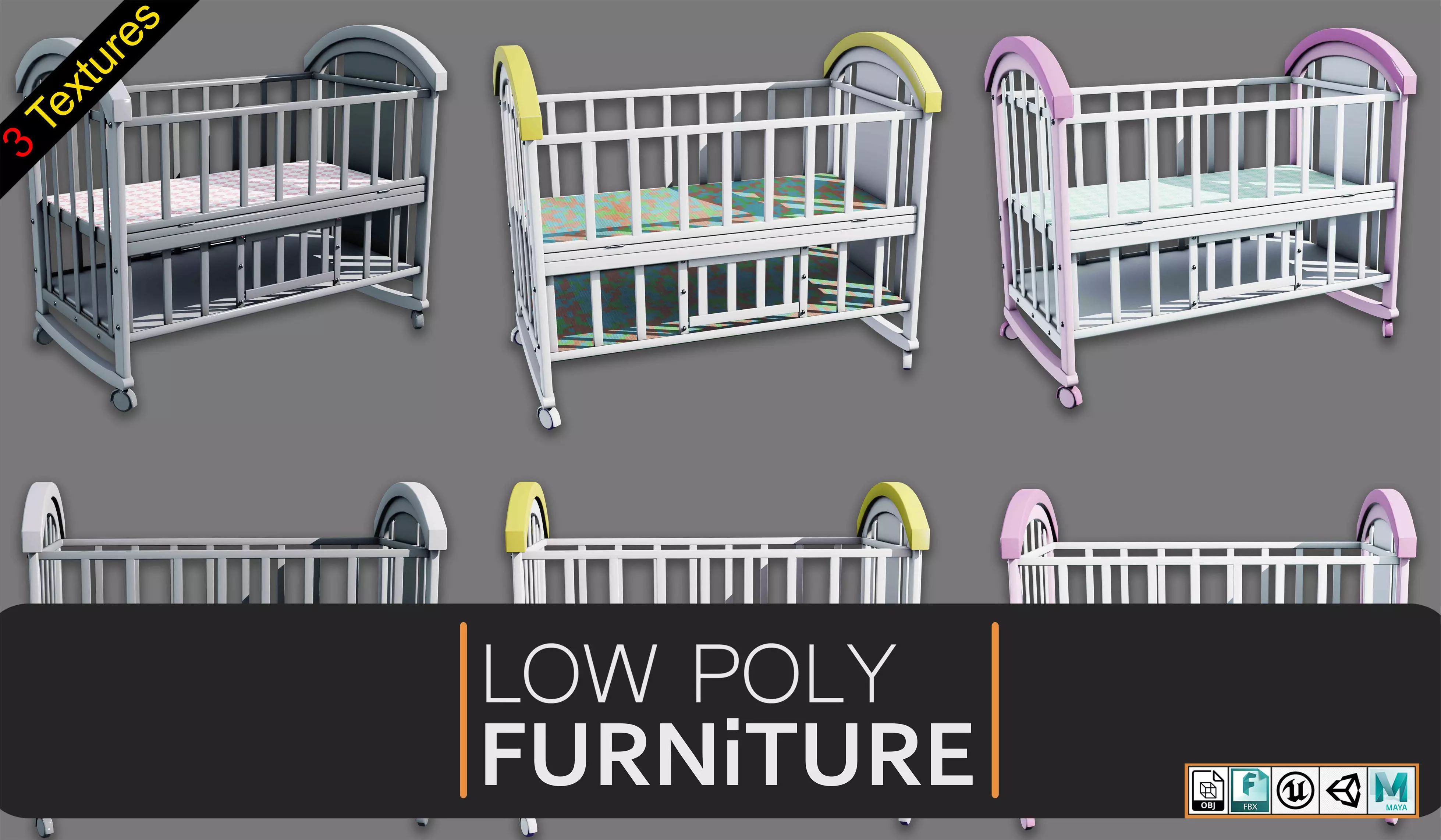 This package includes a game-ready mesh and textures for a Cribs, featuring 4K resolution textures exported from Substance Painter for use in Unreal Engine, Unity, AR/VR, and other applications. The naming conventions for the mesh, textures, and materials are clear and easy to follow. Textures can be downscaled from 4K to 2K or lower to suit your project needs.