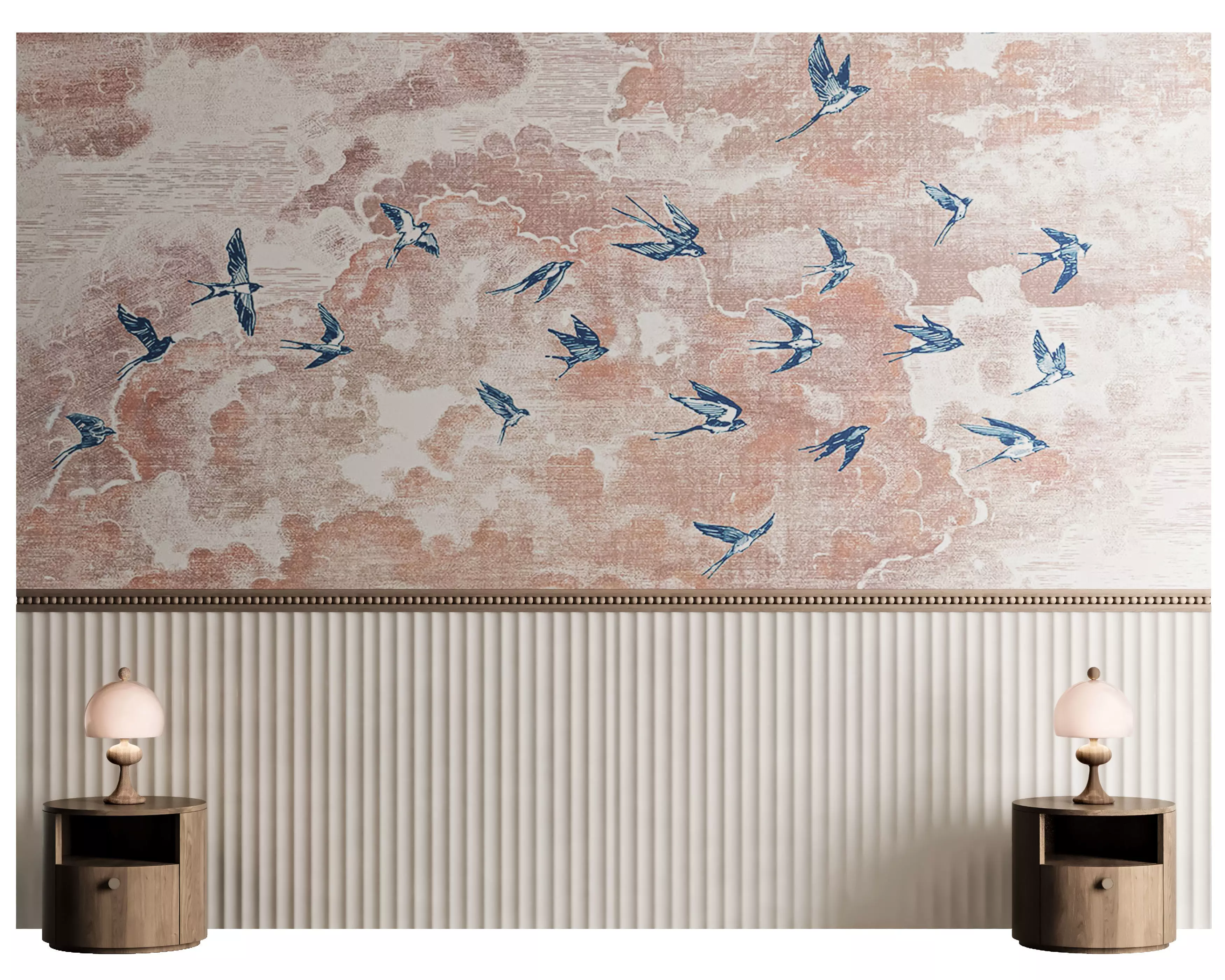 Bedroom Wall/Panel Composition for the head of a bed with Side table and also Table Lamp Used in Vintage Styles ...