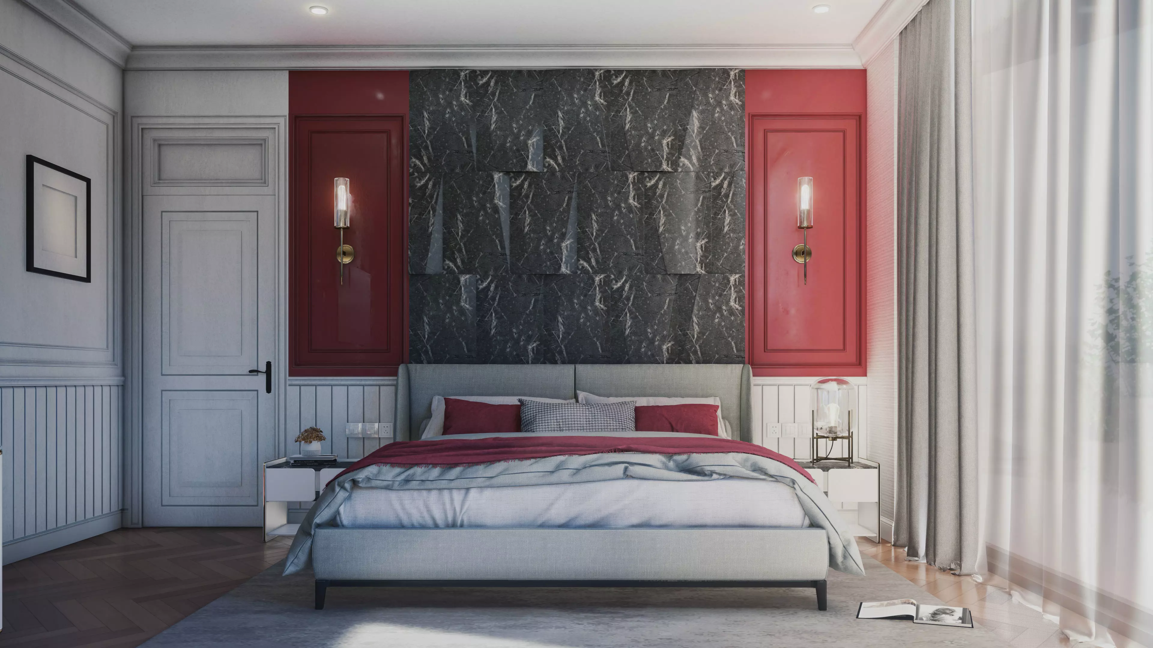 Fully package for Hill House Interior Scene – Bed Room Neoclassical interior design for basic archiectural design stage with: the 3D model textured and illuminated Interior scene, Render - Interior scenes with lighting settings (daytime) ready to render with Lumion 12 or higher, and Post-production (8 PSD files).
