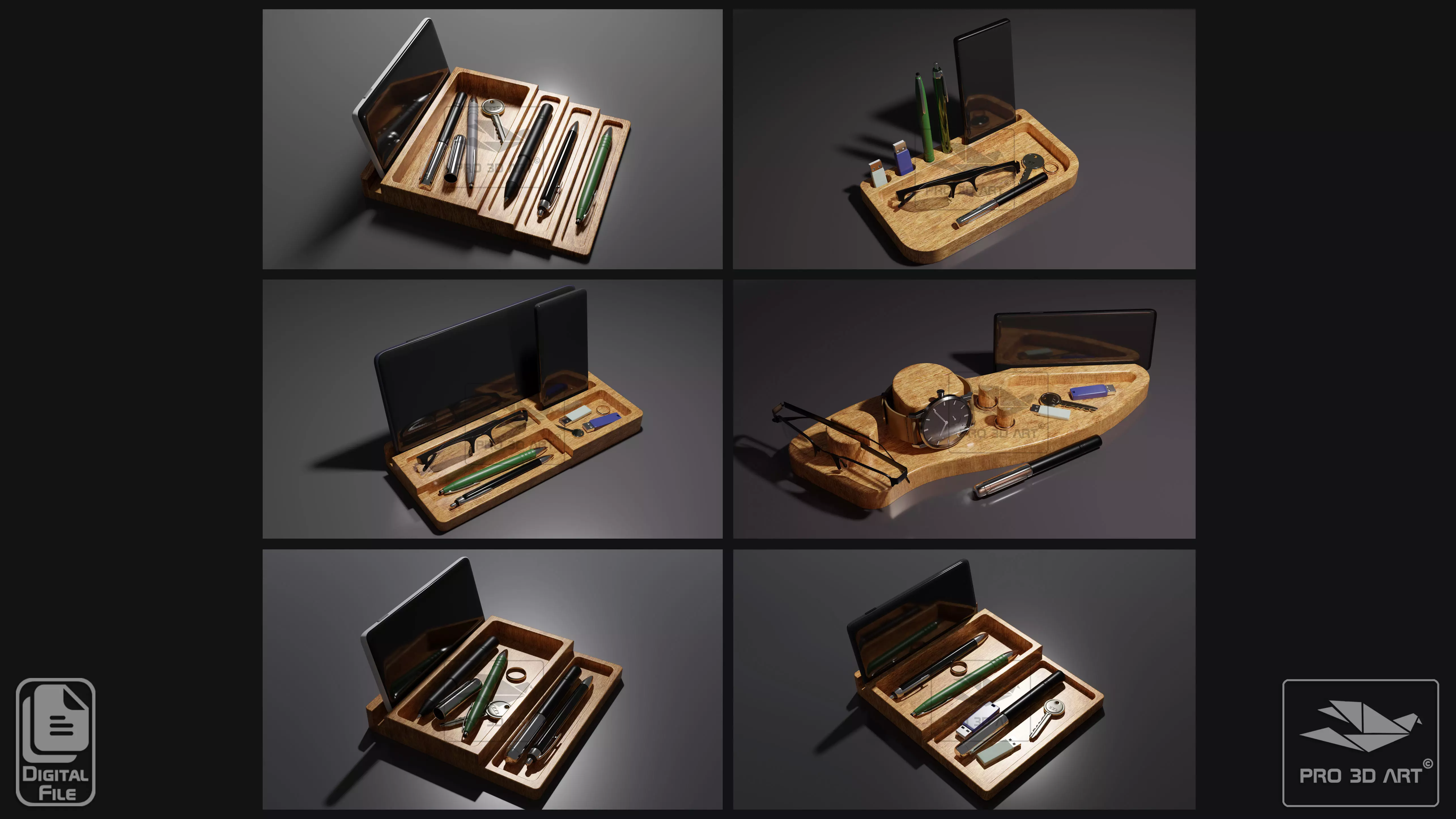 Organizer / Phone Keys Pen Holder - Project for CNC Router (STL, SVG, DXF, AI, EPS, PDF)
