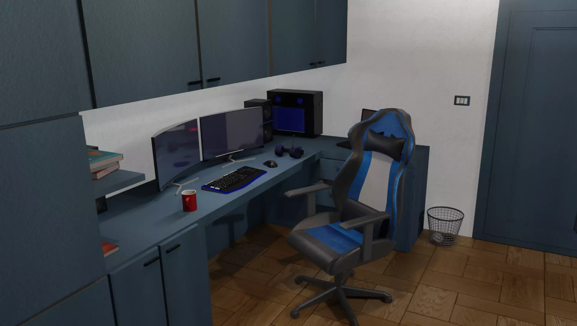 The model has material settings that define how surfaces look (color, shine, transparency, etc.).
