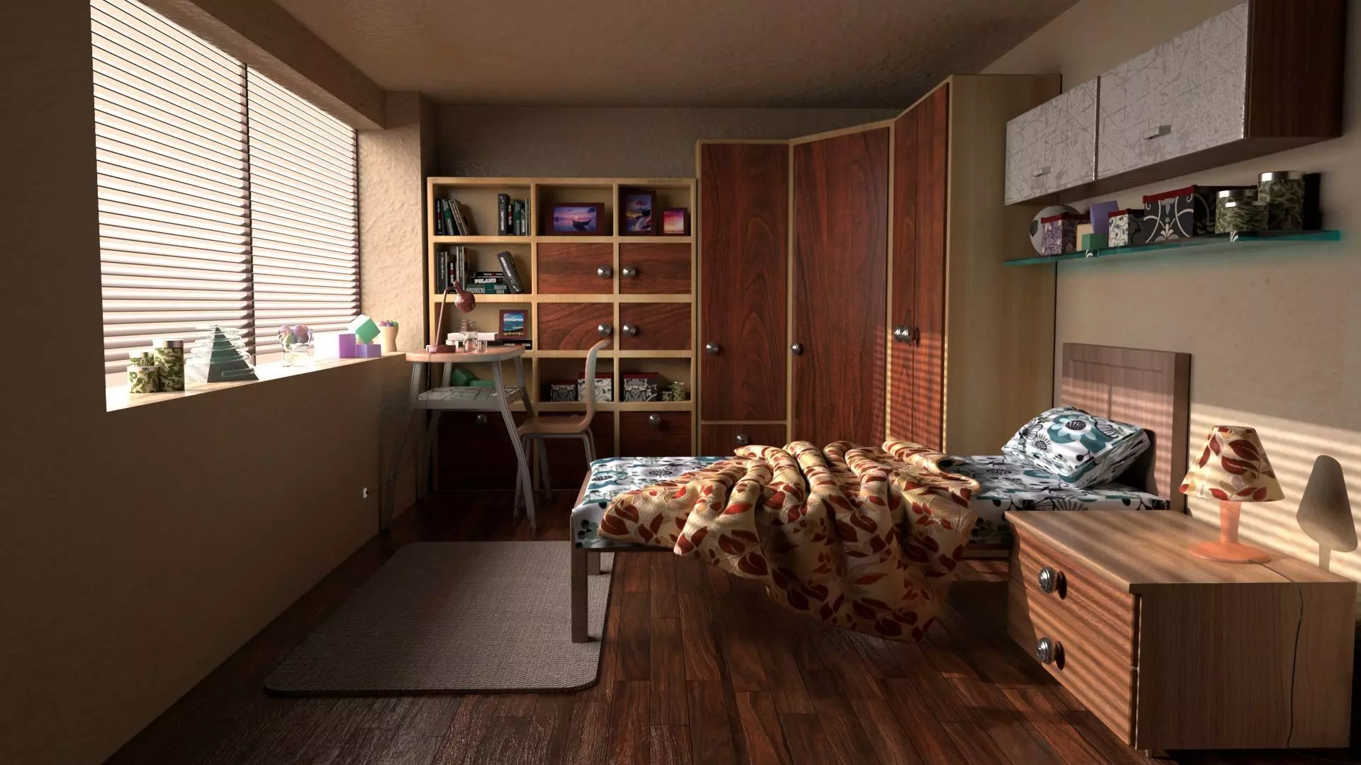 The model has material settings that define how surfaces look (color, shine, transparency, etc.).