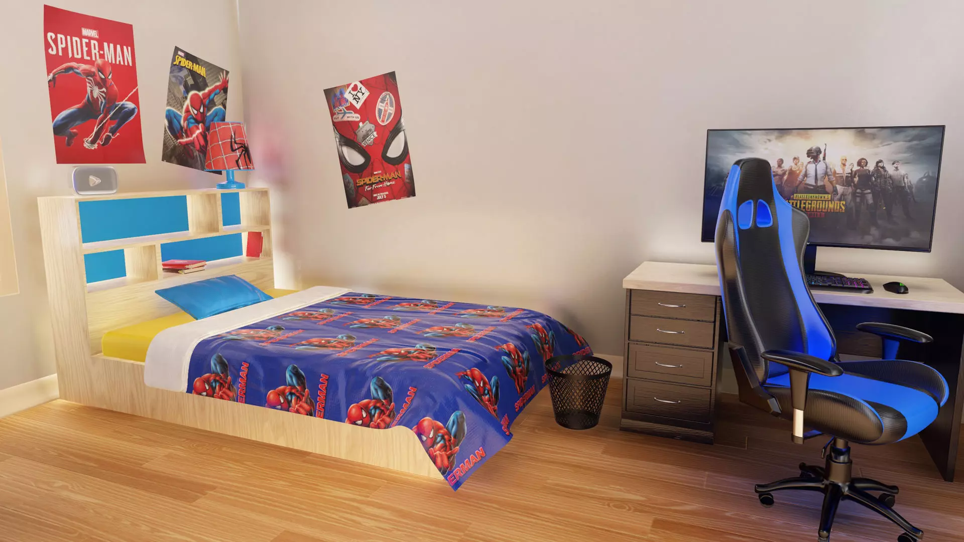 -Kid BED; Verts: 26061, Tris:51628(Textures 2k; Base, Height, Metallic, Normal, Roughness)(3 different texture; spidermans and just blue)