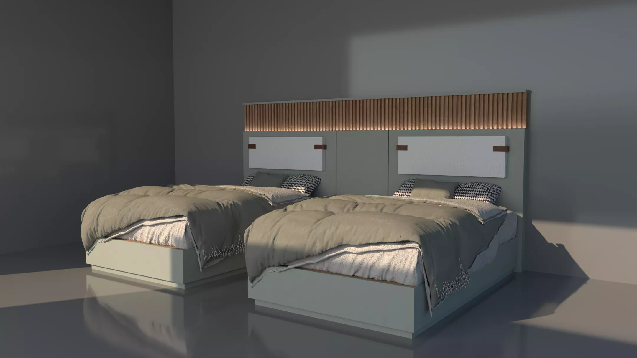 Designed to bring comfort and harmony to any space, this set features two separate beds in elegant olive green with matching nightstands. Ideal for guest rooms or resorts seeking a refined yet cozy look, crafted with high-quality materials and precise detailing.