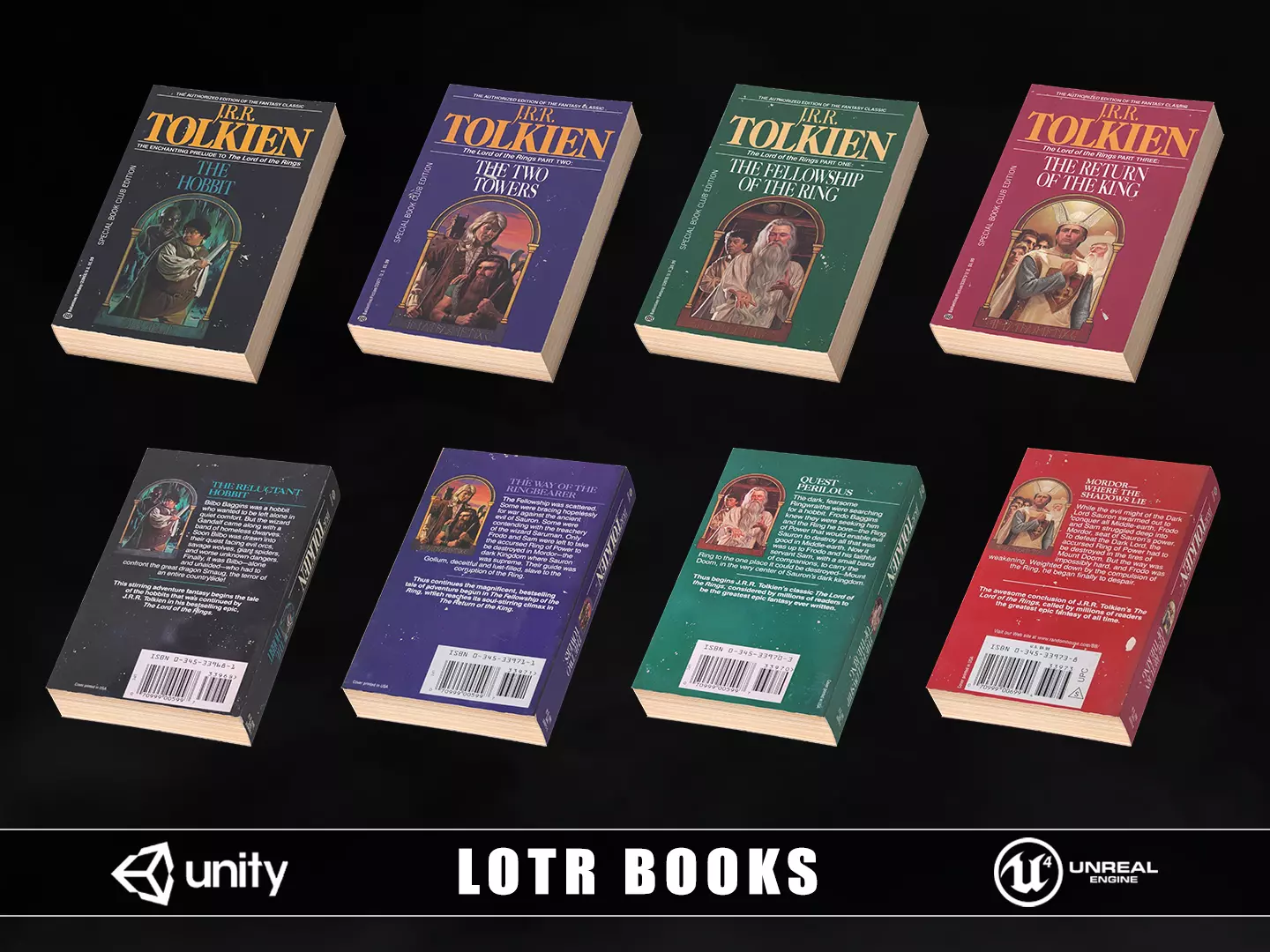 Lord of The Rings Books 3D model. This model comes with Books and 4 texture variations. Modeled in Maya and textured with Substance Painter and Photoshop. The model is built to scale and is UV unwrapped with 2k textures. Includes 3D model and textures!