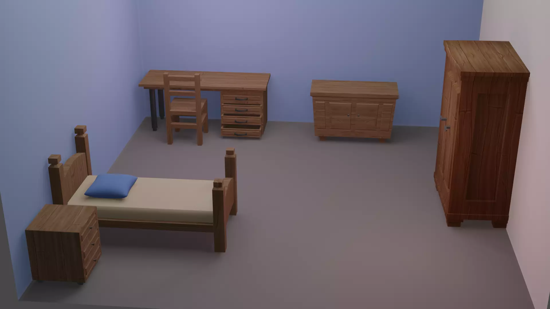 Low-Poly Stylized Bedroom set - Lowpoly interior 1 Low-poly 3D model