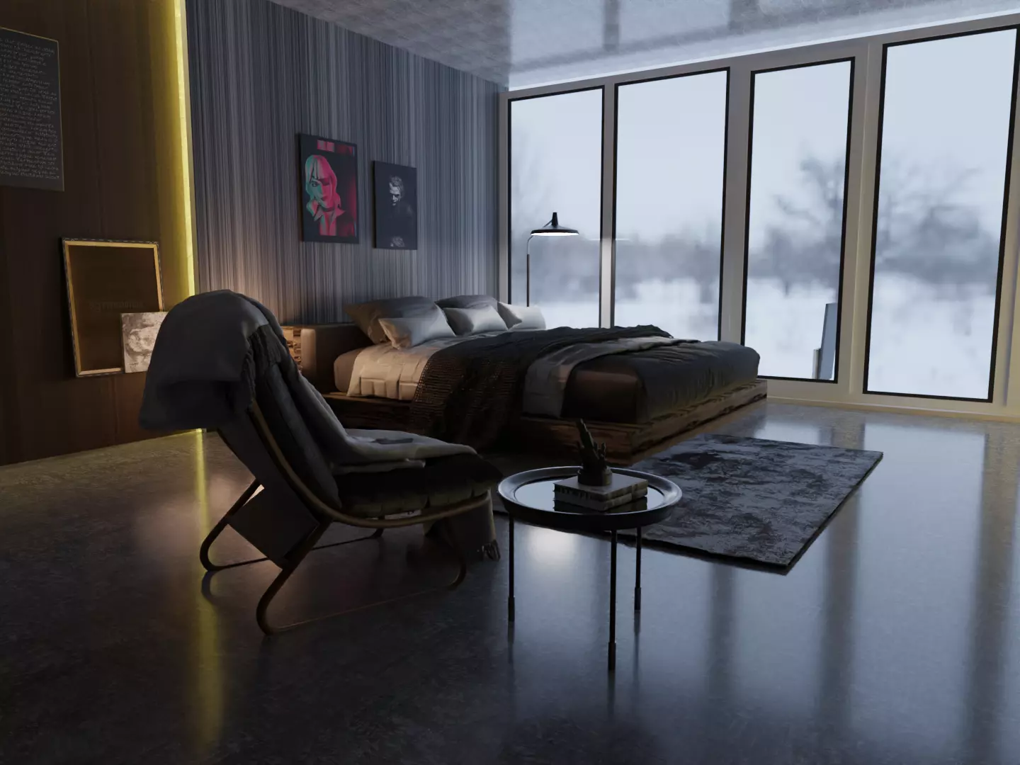 The model has material settings that define how surfaces look (color, shine, transparency, etc.).