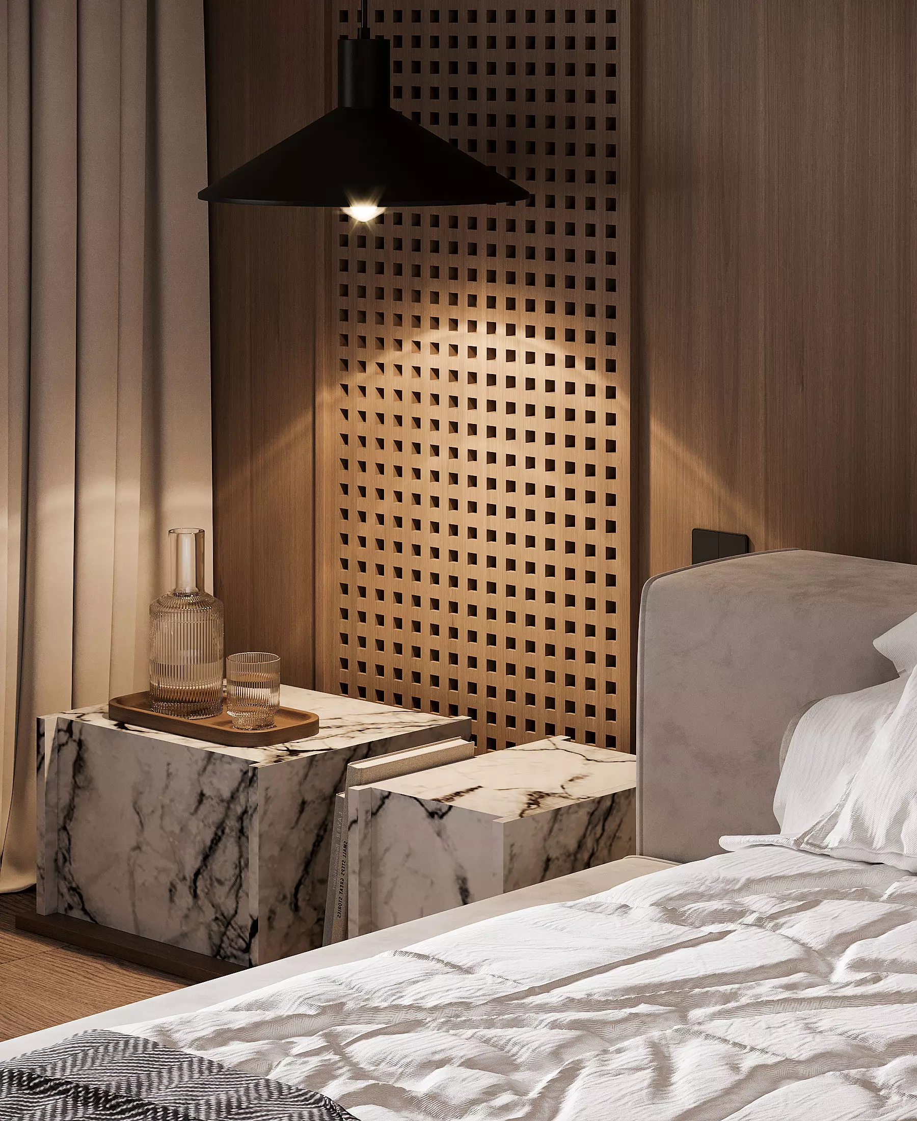 This project is ideal for interior design portfolios, architectural visualization presentations, and commercial use where a refined minimalist bedroom concept is required.