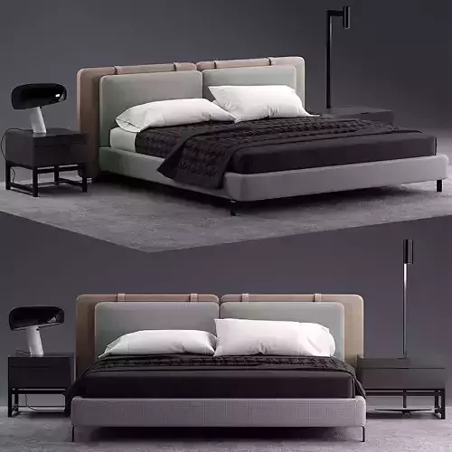 Achieve luxurious modern bedroom visualizations with this Minotti Tatlin inspired contemporary bed set, including fully detailed bed, side tables, and lighting props. Featuring a plush two-tone upholstered headboard, quilted side panels, and crisp bedding, this asset is optimal for architectural renders, designer catalog imagery, virtual staging, and high-end game/real-time applications.